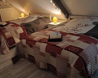1ère chambre : 2 lits de 140 et 1 lit de 90+ 1 lit parapluie sur demande (fourni).
