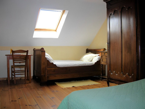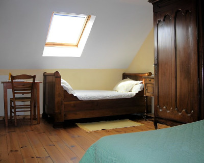 Dans une aile indépendante, dans cette bâtisse du XVIème avec pièce de vie au rez-de-chaussée, la chambre de l'école à l'étage fut celle d'une maîtresse d'école.