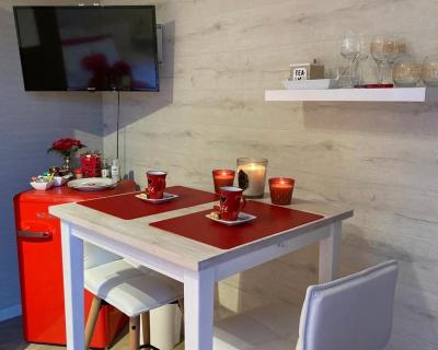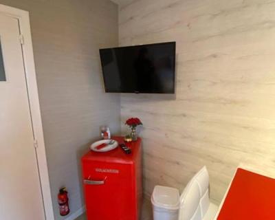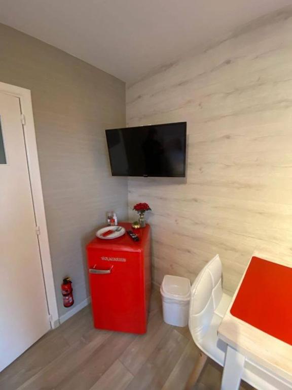 Un réfrigérateur et un micro-ondes sont également à disposition, de même qu’une machine à café et une bouilloire.