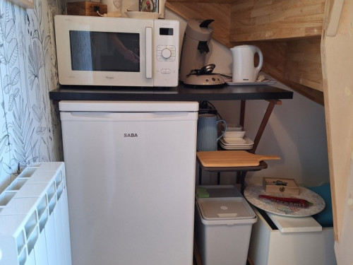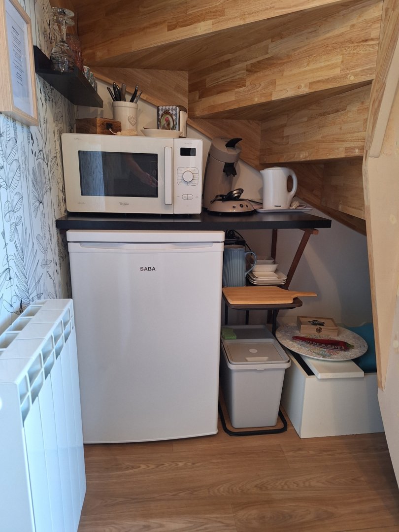 où dans espace office du vendredi au dimanche (*service au plateau la veille en semaine du lundi au jeudi), tisanerie, micro-ondes, bouilloire, cafetière et réfrigérateur à votre disposition.