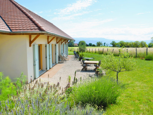 Vous disposez de deux confortables chambres de deux personnes, douillettes et bien équipées, de plain-pied qui ont vue sur la campagne et les massifs des Alpes, le Bugey et le Vercors.