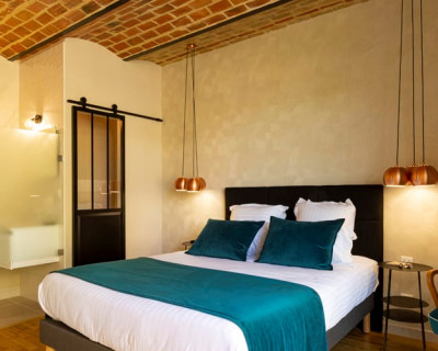 This room pays homage to a special alliance, bringing the opportunity to spend one or more nights within this magical universe. Boasting a patio, shower room and vaulted stone ceiling above the sleeping area, it is the most spacious room in the house.
