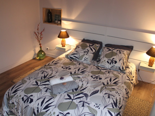 Au cœur de la maison, par l'escalier commun, Vous disposez d'une véritable suite avec chambre très confortable et calme, salon, wc, salle d'eau privés.