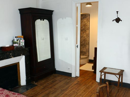 Située au premier étage, la chambre comprend un lit double et une salle de bain munie de douche et toilettes privées.