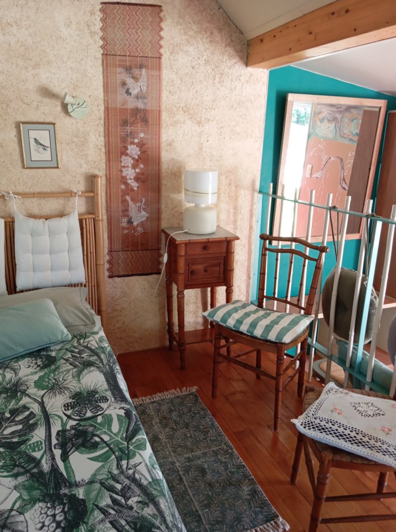 Le lit est grand 160/200, avec un couchage supplémentaire en mezzanine .