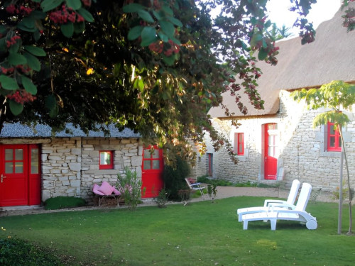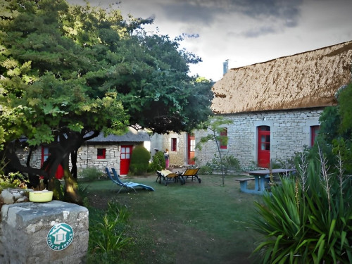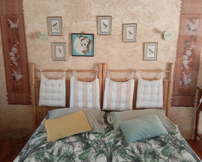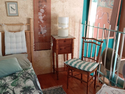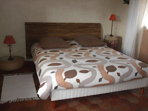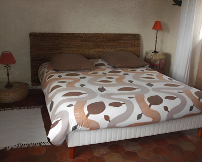 Matériaux naturels , au sol vieilles tomettes ,au mur enduit chaux roseaux.