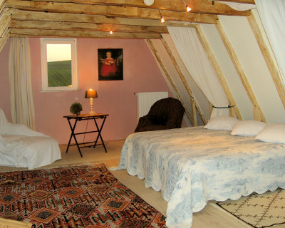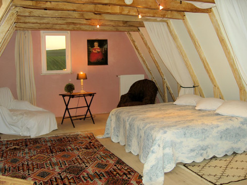 Bénéficiant d'une entrée indépendante, d'une salle de bains et de WC, la première chambre est spacieuse (30 m²) avec charpente apparente, sa literie de grandes dimensions (larg.180 cm ou 2 x 90 cm). La seconde chambre, en duplex, dans une petite maison en pierres de tuffeau située dans le jardin, vous offrira confort et intimité (literie de grandes dimensions).