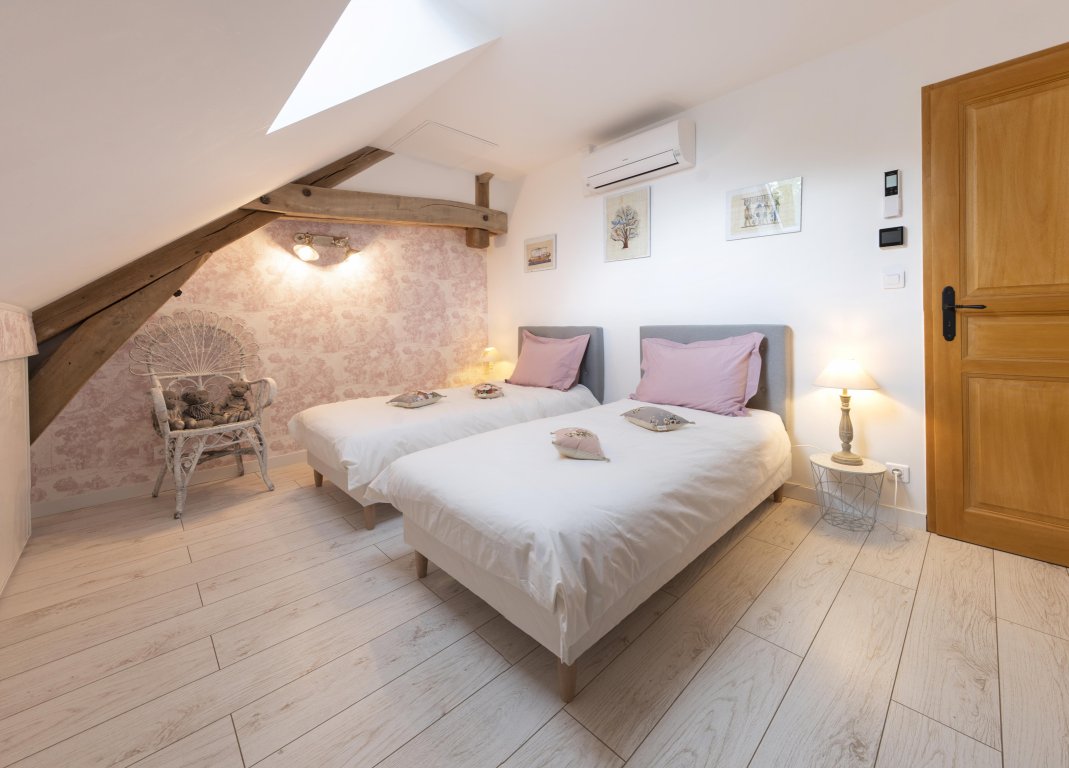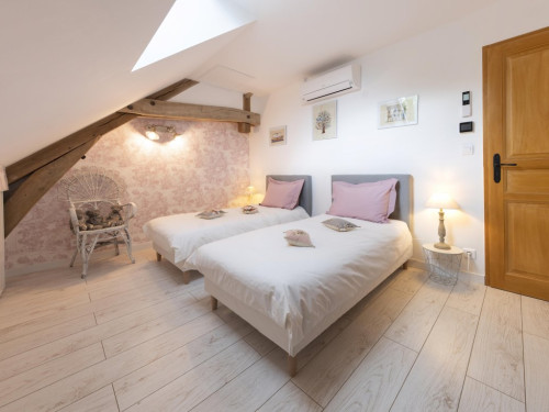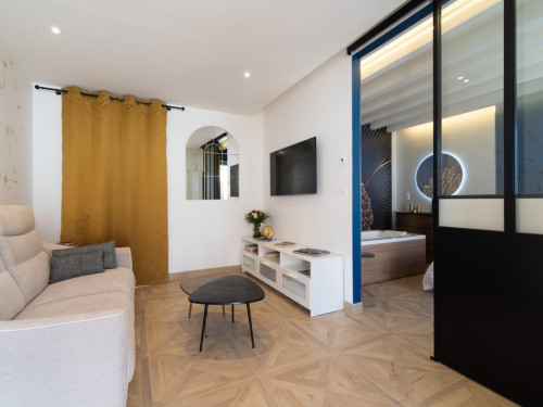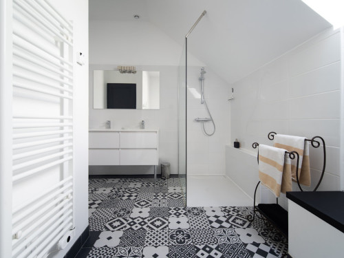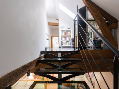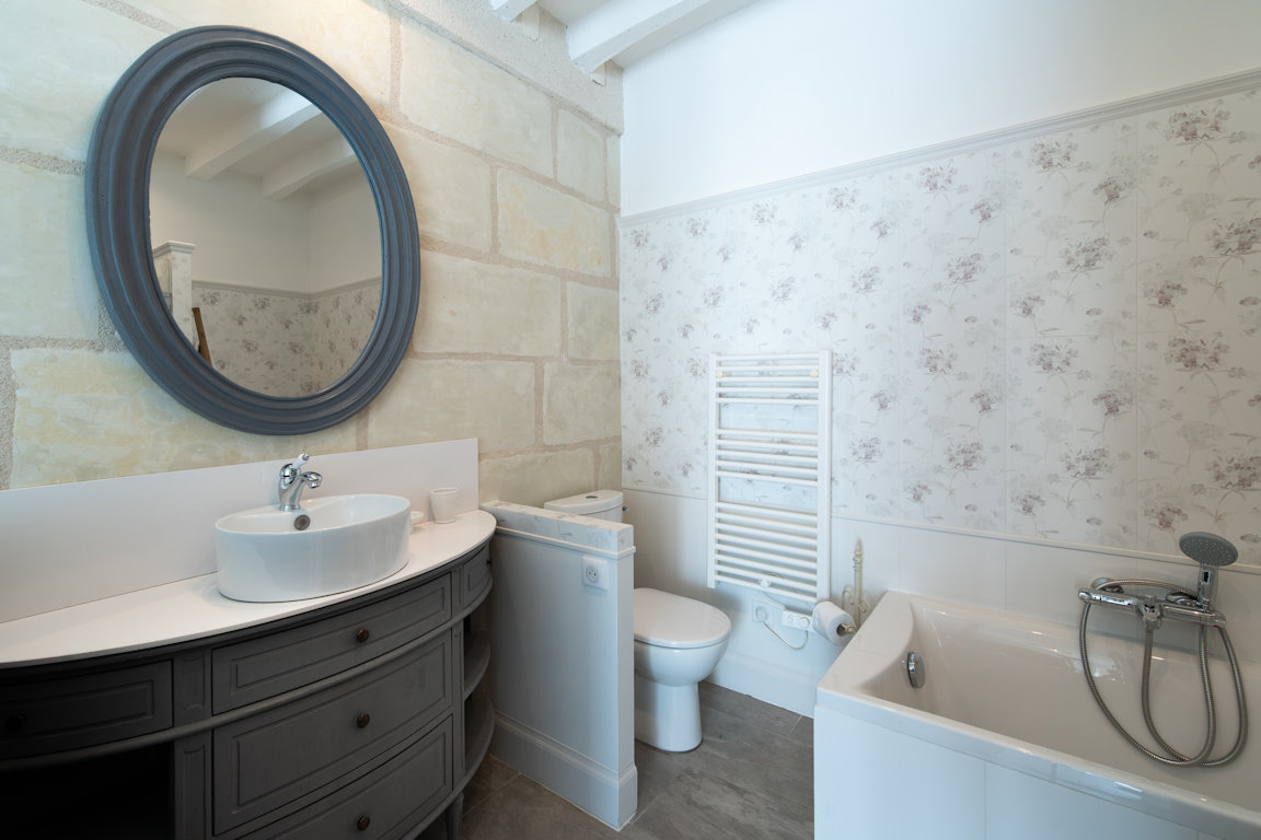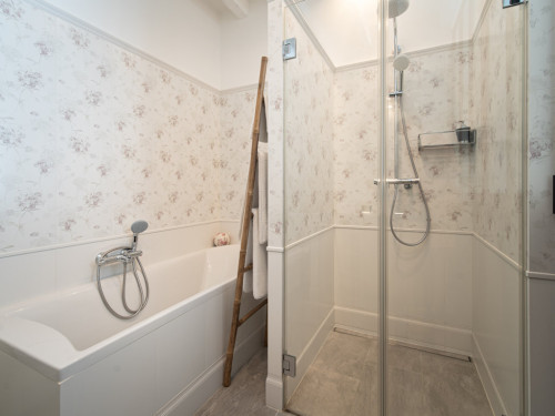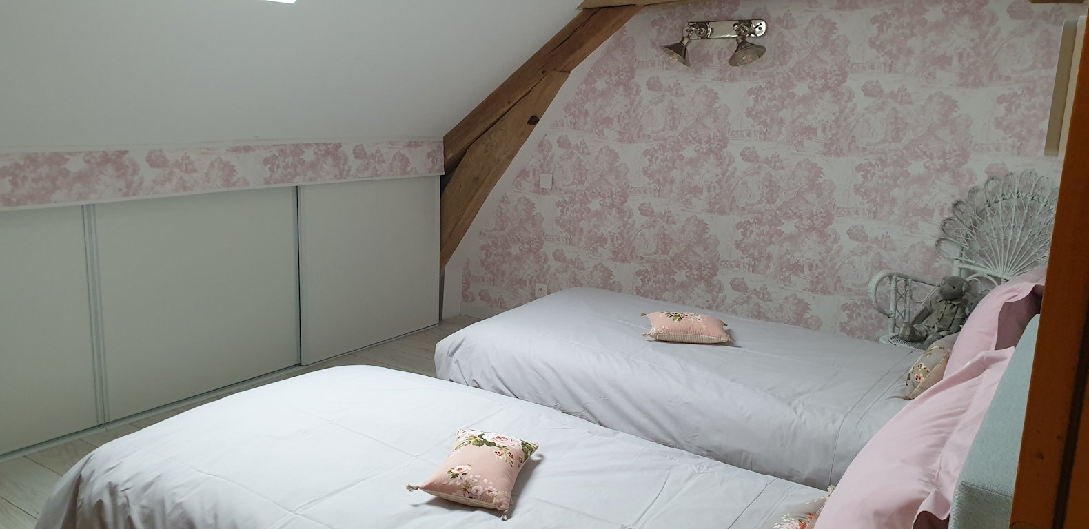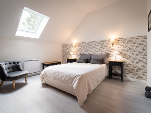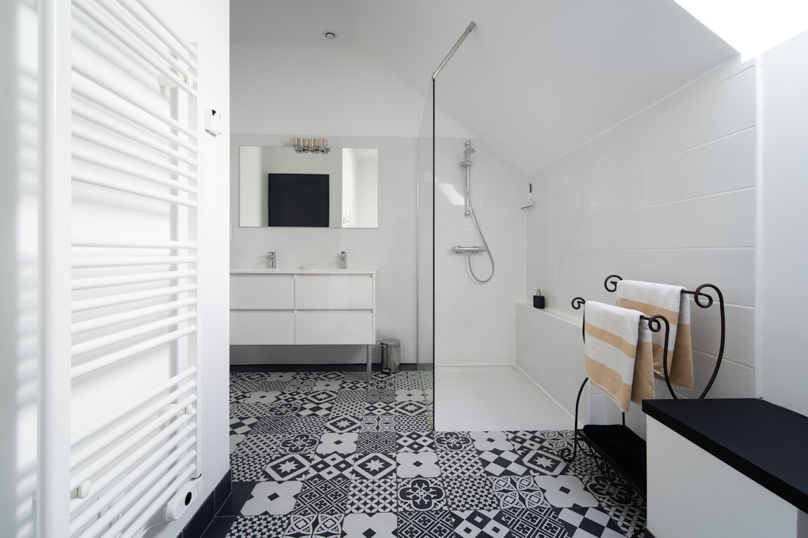 La salle de bain est aménagée au fond de cette pièce.