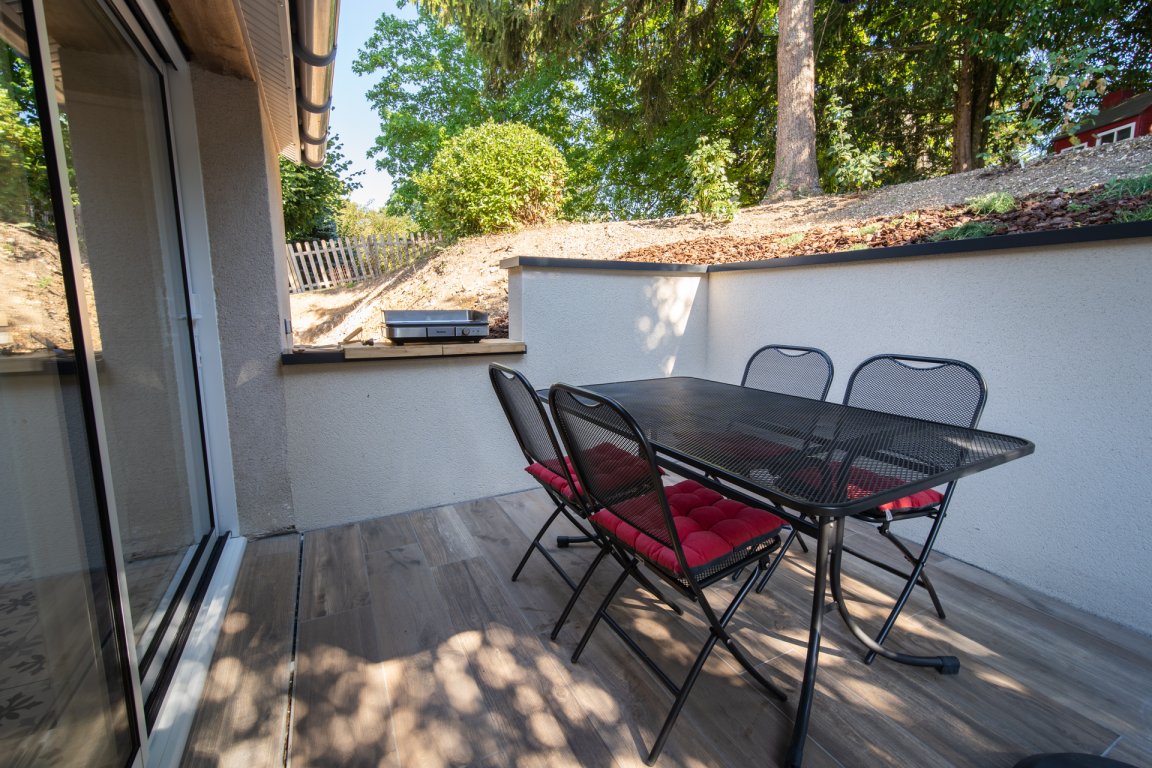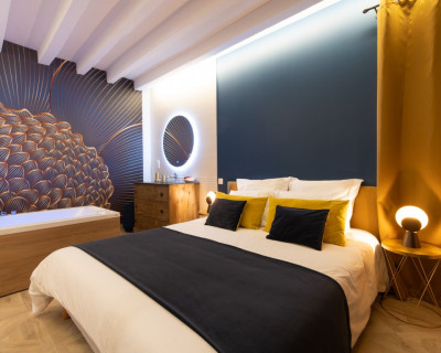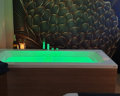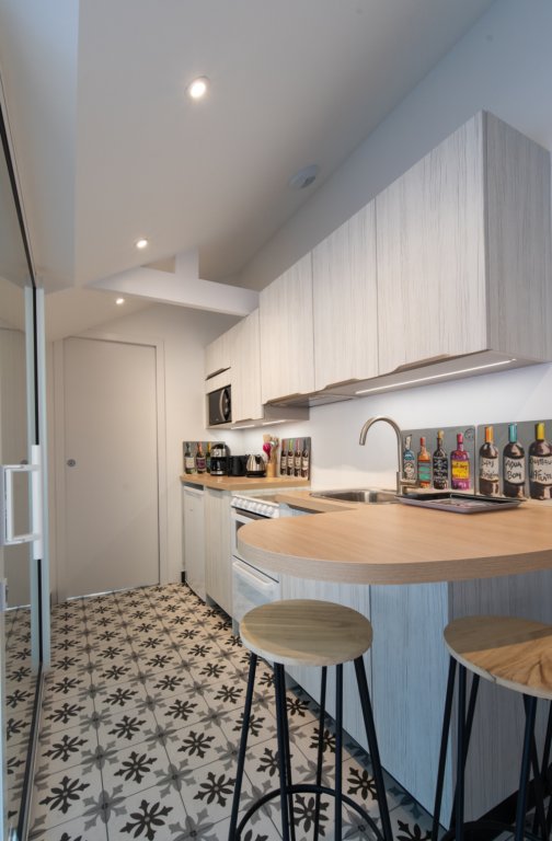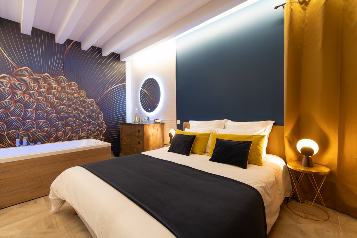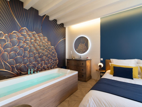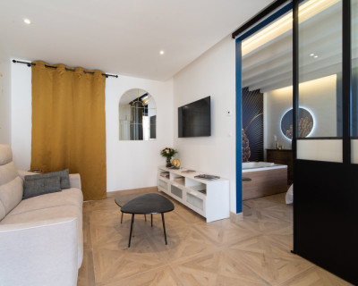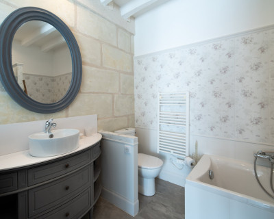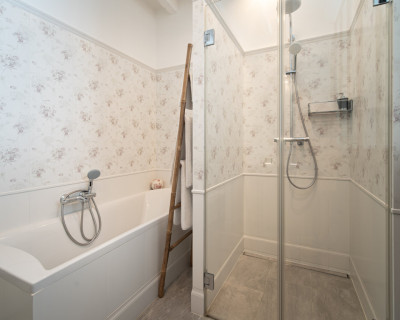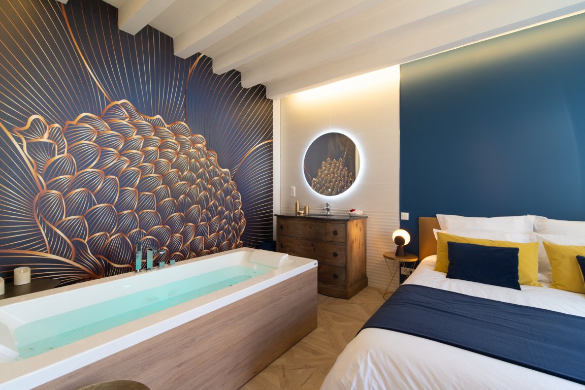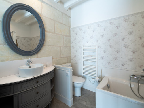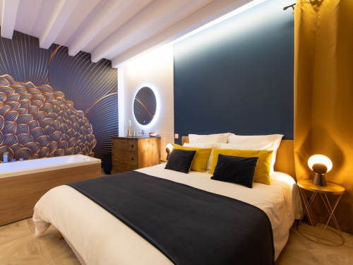La salle de bain est aménagée au fond de cette pièce.