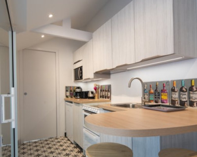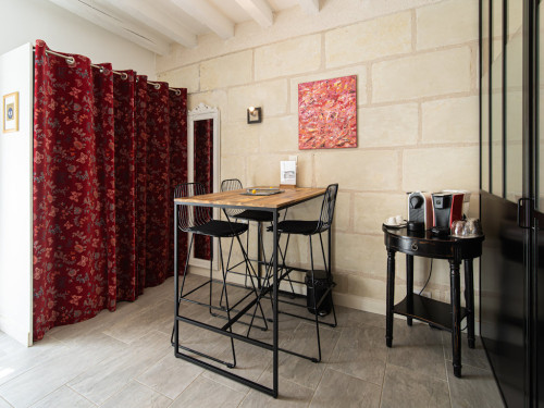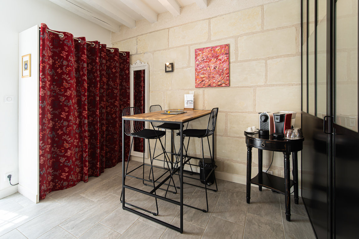 On accède à la chambre par ce salon d'accueil.