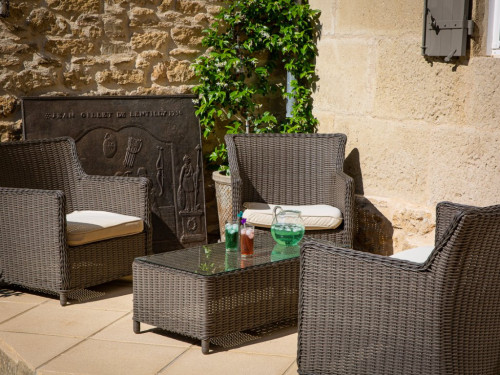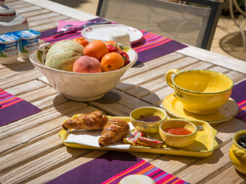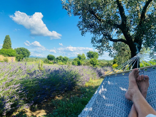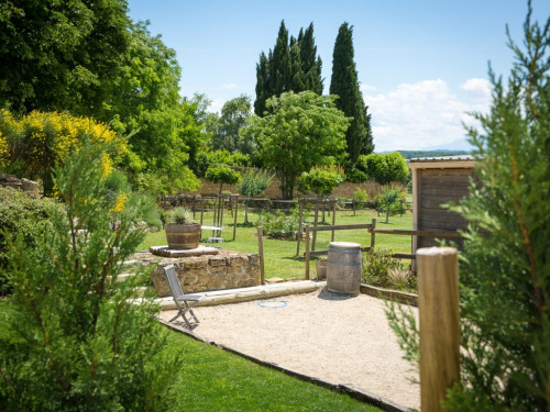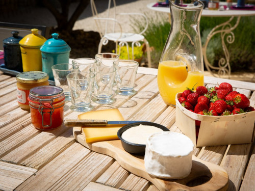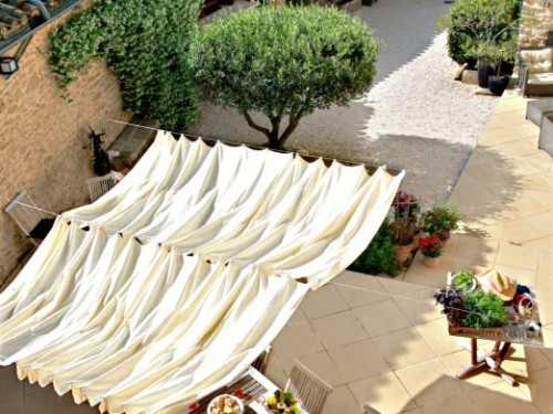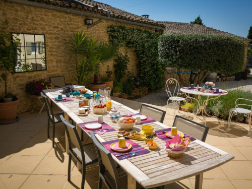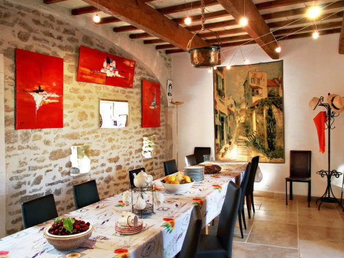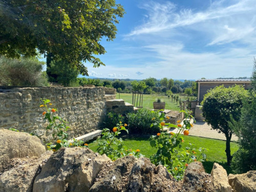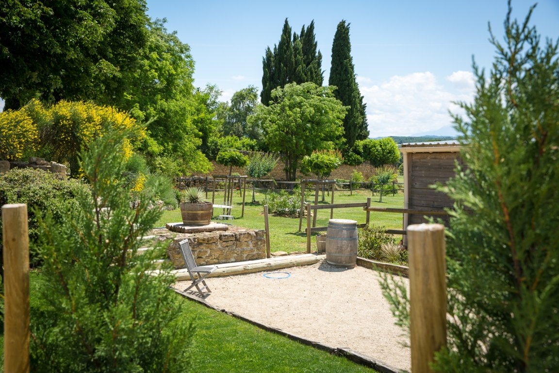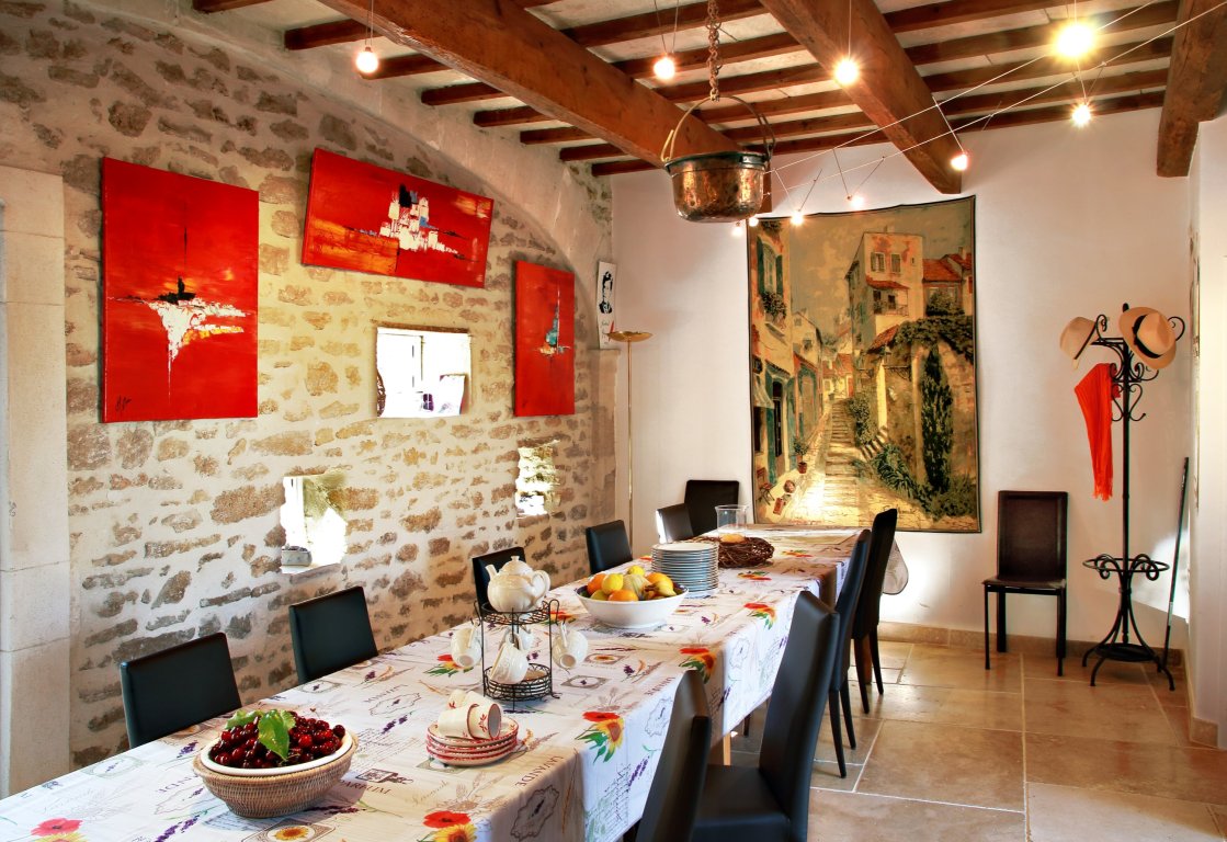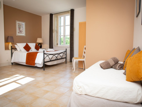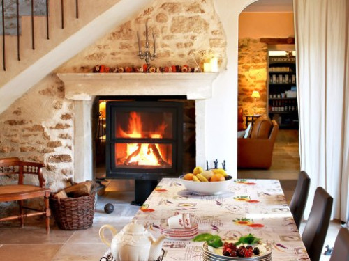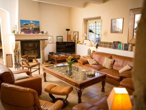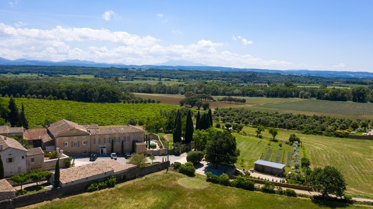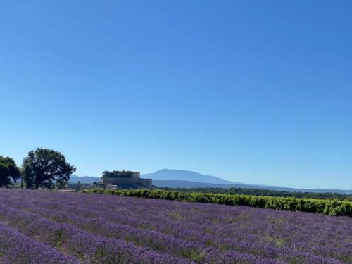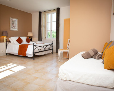 Baignoire, douche, WC privé séparé, sèche-cheveux, coin salon, télévision, prises USB, cette chambre possède une cheminée en pierre ancienne et des voûtes qui vous rappelleront le prestige de cette bastide Drômoise du 17°siècle située à seulement 5 minutes de Grignan en Drôme provençale.