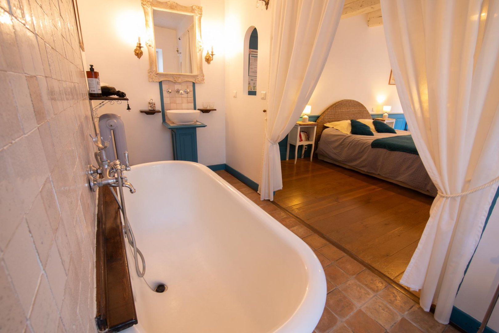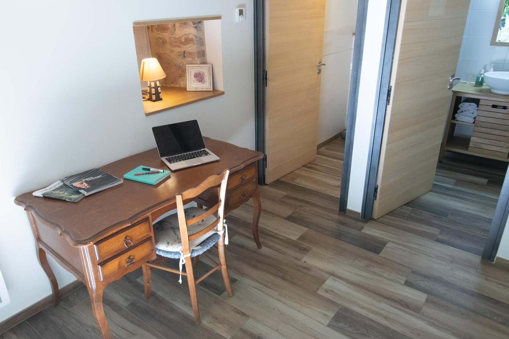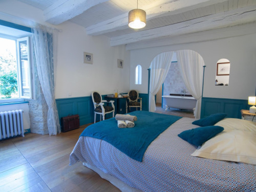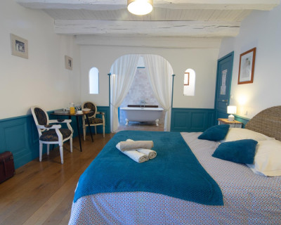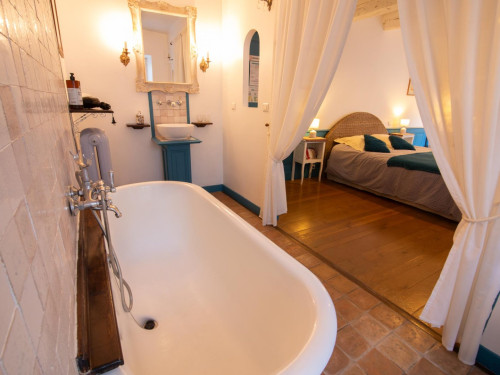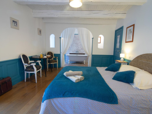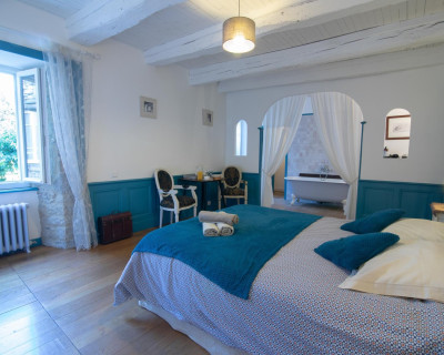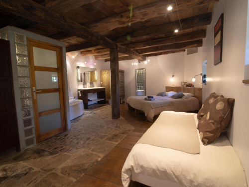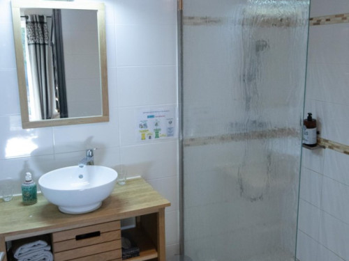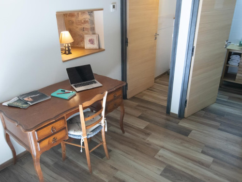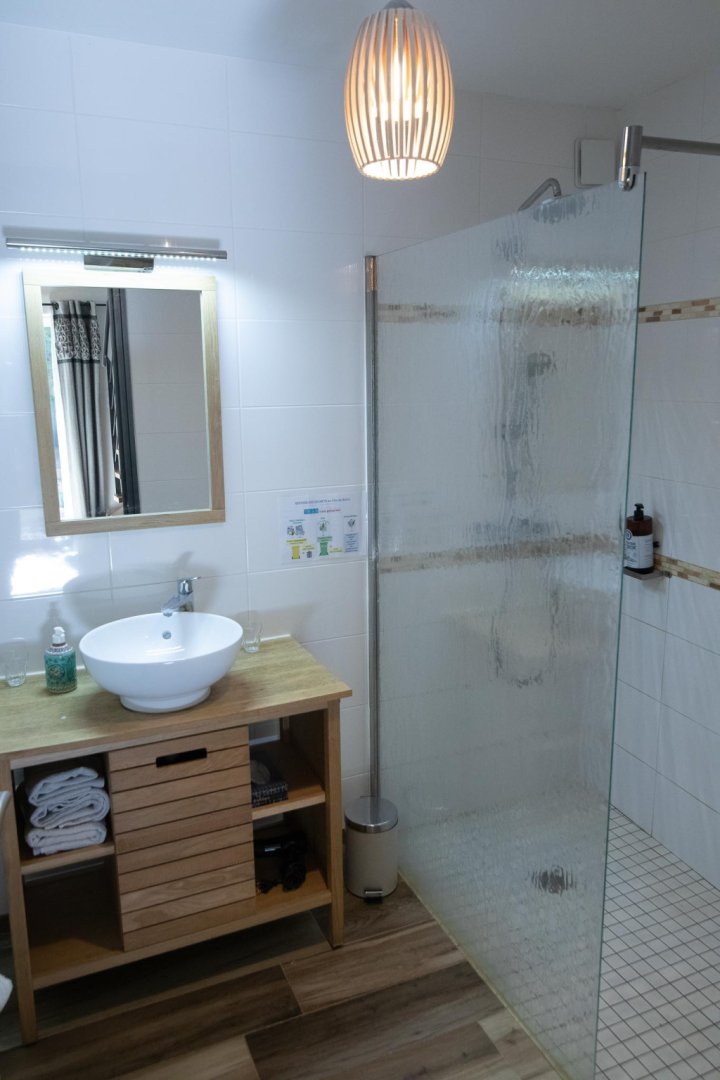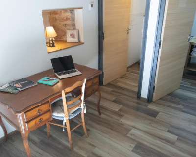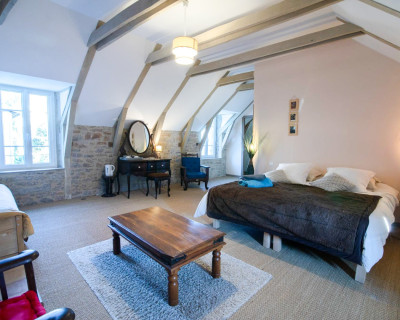 Vous accéderez à la chambre par une entrée qui desservira également le séjour où seront pris petit déjeuner et dîner, ainsi que le salon réservé aux hôtes.