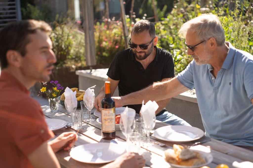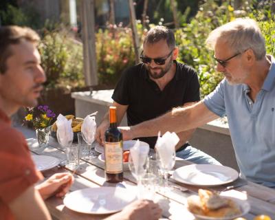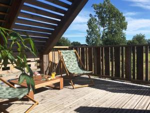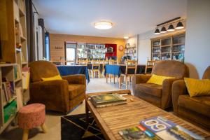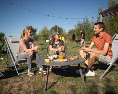 Après une journée de randonnée, de planche à voile ou de pêche, vous pourrez vous détendre dans le jardin ou dans le salon commun.