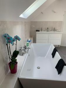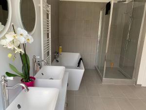 Vous bénéficierez d’une salle de bains privative entièrement équipée avec une douche et un sèche-cheveux.