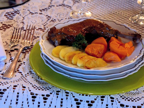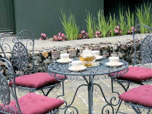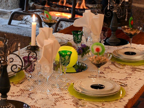 Les pierres apparentes et les poutres massives se marient parfaitement à la décoration raffinée.