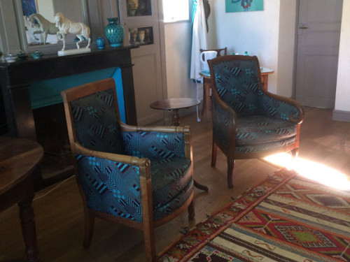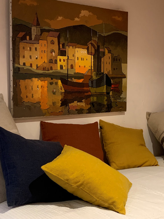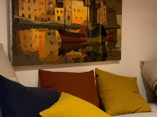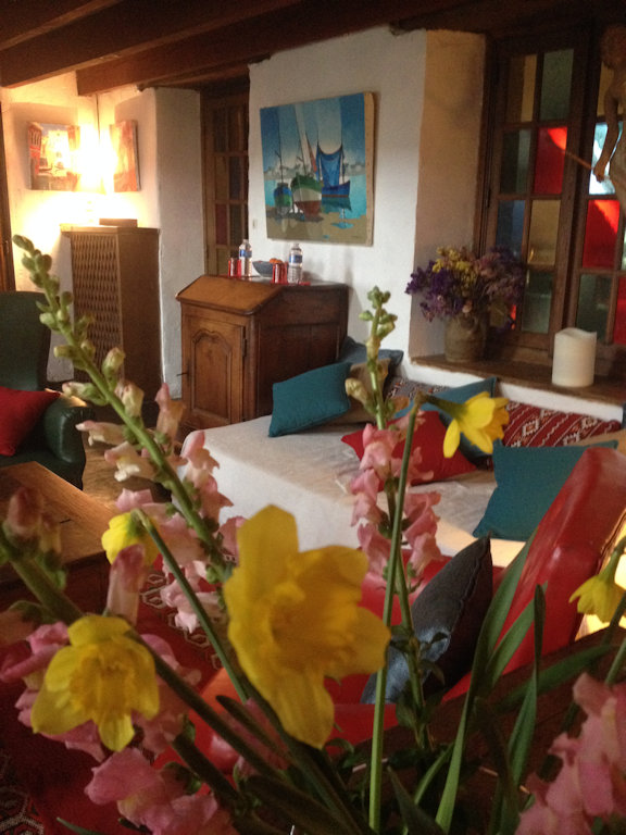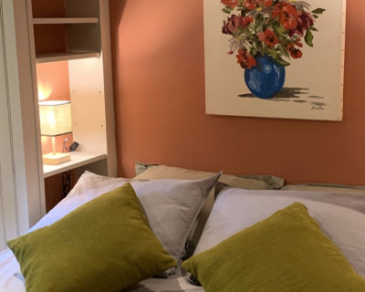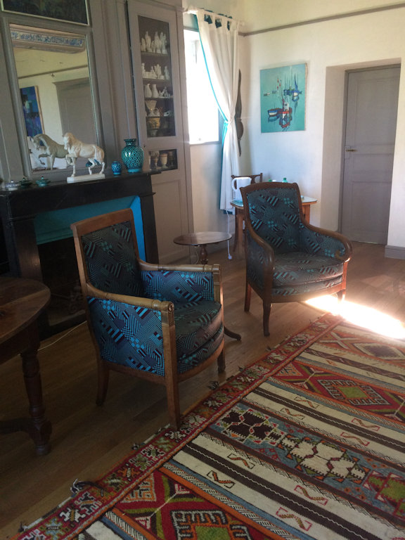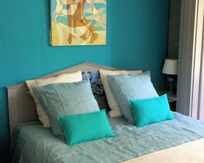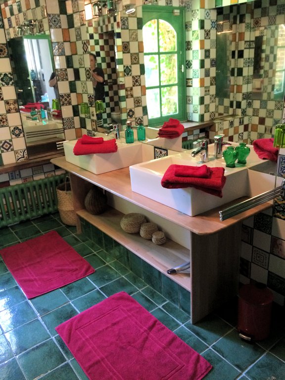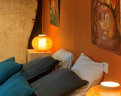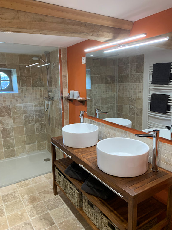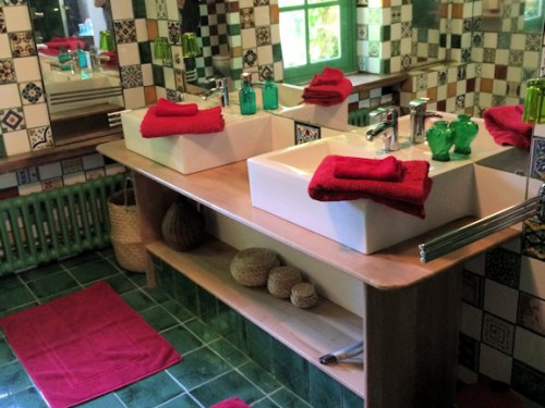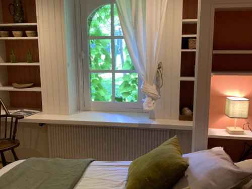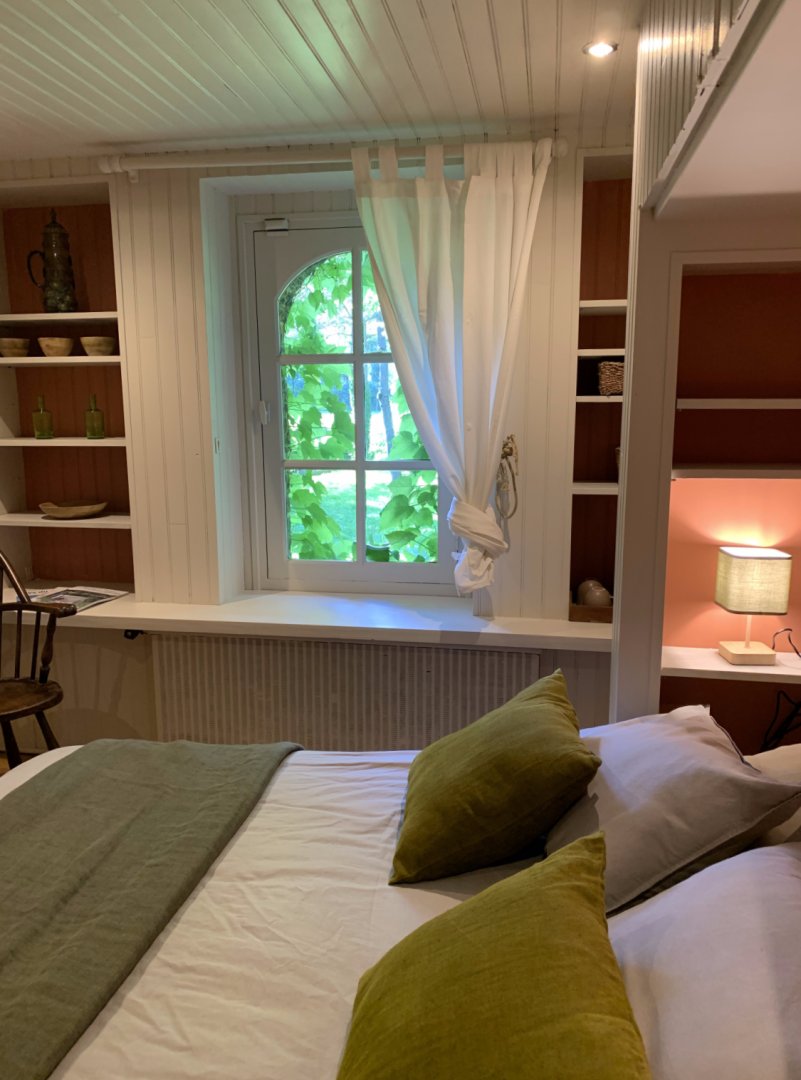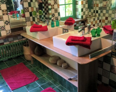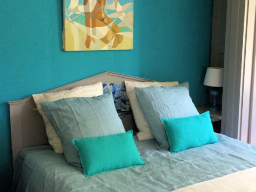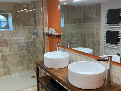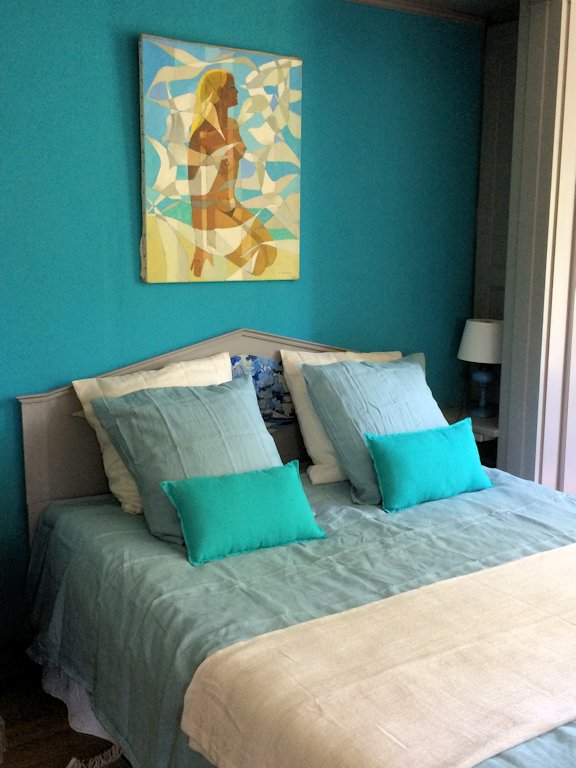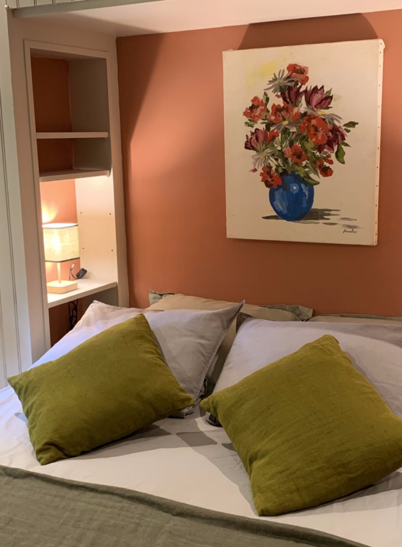 Chambre spacieuse de style, avec l'esprit du maître de maison, décoration artistique, grande vue sur les extérieurs, salle de bain avec une douche à l'italienne facile d'accès avec un air de Maroc, souvenir de lointain voyages, le grand lit laisse le repos vous envahir et les draps sont en lin ... pour de douces nuits.