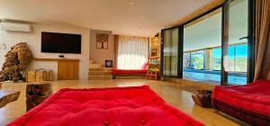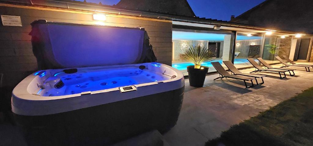Lors de votre séjour, vous pourrez profiter d’un vaste salon avec une télévision 4K de 165 cm, un lecteur Blu-ray 4K et un kit son 5.1. La piscine intérieure est chauffée tout au long de l’année. Une paroi vitrée peut être ouverte sur la terrasse offrant une vue sur le jardin.