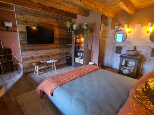 Jessica et Christophe méritent un 10/10 dans tous les domaines. Ils sont tous les deux très sympathiques et extrêmement attentionnés. La chambre est très joliment décorée et super cosy. Tout est impeccable et très soigné. Le logement est situé dans un endroit unique avec un magnifique panorama. C'est une sacrée montée en voiture, mais ça vaut le coup. C'est un plaisir de profiter du silence et du sifflement des oiseaux là-haut. Nous avons eu de la chance et avons pu apercevoir des cerfs veaux un soir. En été, vous pourrez profiter d'une jolie piscine avec une vue unique. Chaque matin, Jessica prépare un petit-déjeuner délicieux et varié avec une salade de fruits frais, ainsi qu'un choix de préparations aux œufs, dont des crêpes. Sur demande, ils préparent également un excellent dîner du soir qui peut facilement rivaliser avec les meilleurs restaurants de la région. Christophe était pâtissier dans une vie antérieure et prépare de délicieux desserts. Il vous aidera également à choisir des balades (neige) à Marthod et alentours, mais aussi dans la région au sens large, vers Les Saisies, le Col des Aravis, Megève, etc. Si je devais utiliser un mot pour décrire notre séjour de plus d'une semaine : PARADISIAQUE !! Merci Jessica et Christophe, vous êtes un super duo !! Nous reviendrons certainement. Cordialement, P&M !!