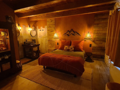 Le Refuge du Montagnard est un ancien relais de diligence de 1789 entièrement rénové à 700 m d'altitude. Il allie l'authenticité du bois et de la pierre à la modernité du confort dans un écrin de verdure idyllique face à la montagne. Calme et dépaysement garantit ! Une atmosphère chaleureuse et cozy ou il fait bon se détendre au bord de la piscine chauffée.