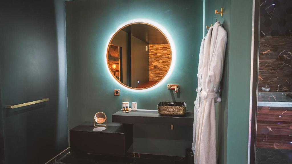L’hébergement Love gite avec Spa nage privatif et espace coquin - Le Secret de l'Elixir vous accueille à Argentré-du-Plessis et possède une baignoire spa. Cet hébergement comprend une réception ouverte 24h/24 et est installé à 40 km de : La Poterie Metro Station, Rennes.