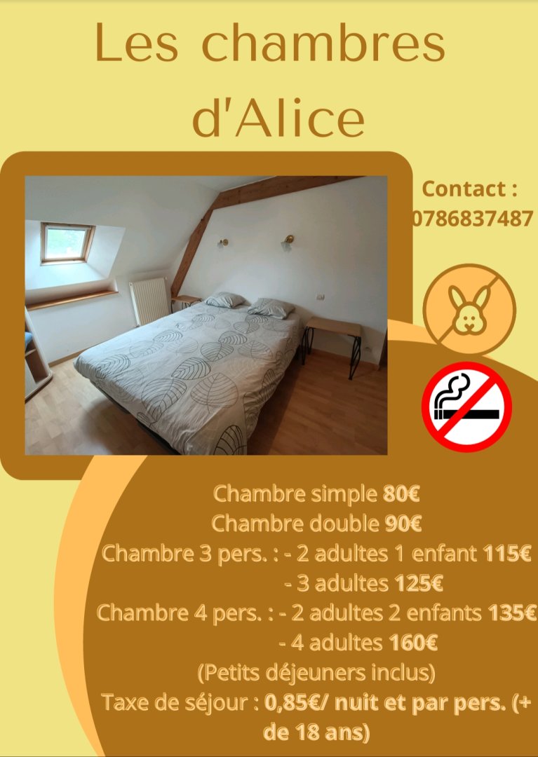 Les tarifs sont susceptibles de changer en 2025. Merci de vous renseigner auprès des chambres d'Alice.