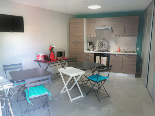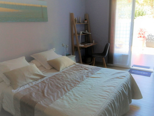 Équipements : 1 lit 2 places en 160 avec literie de qualité, bureau, placard, accès WiFi gratuit, coffre-fort, mini frigo dans le placard, salle d'eau avec douche à l'italienne et WC.