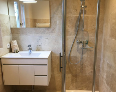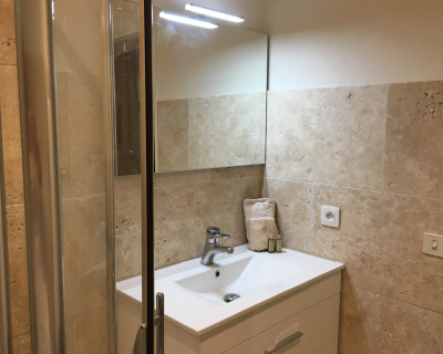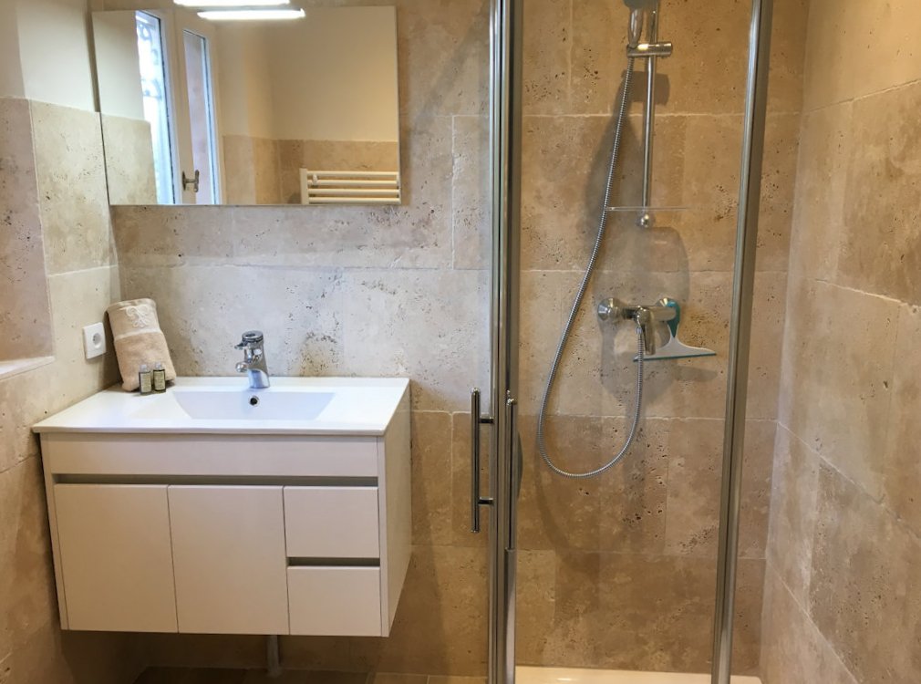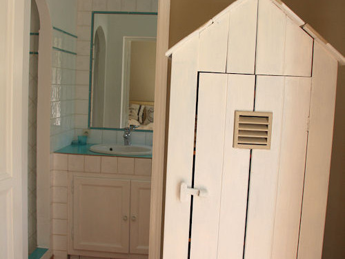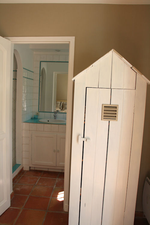 La salle de bains n'est pas dans la chambre, elle est juste à côté
