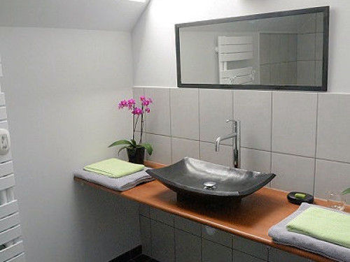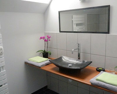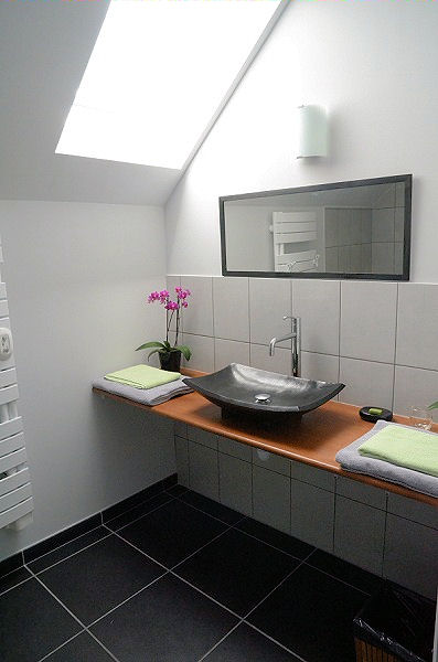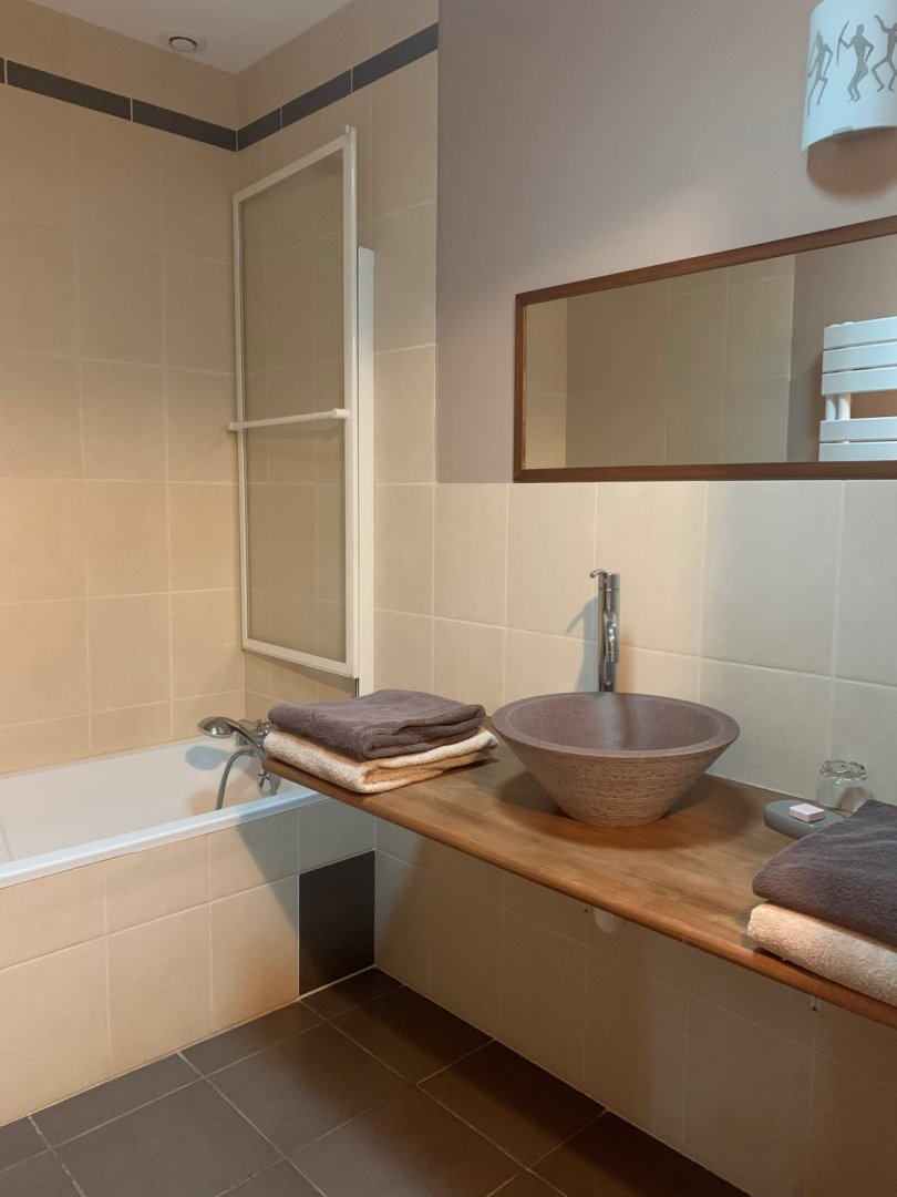 - salle de bain avec baignoire dans la première et salle d'eau avec douche à l'italienne dans la seconde