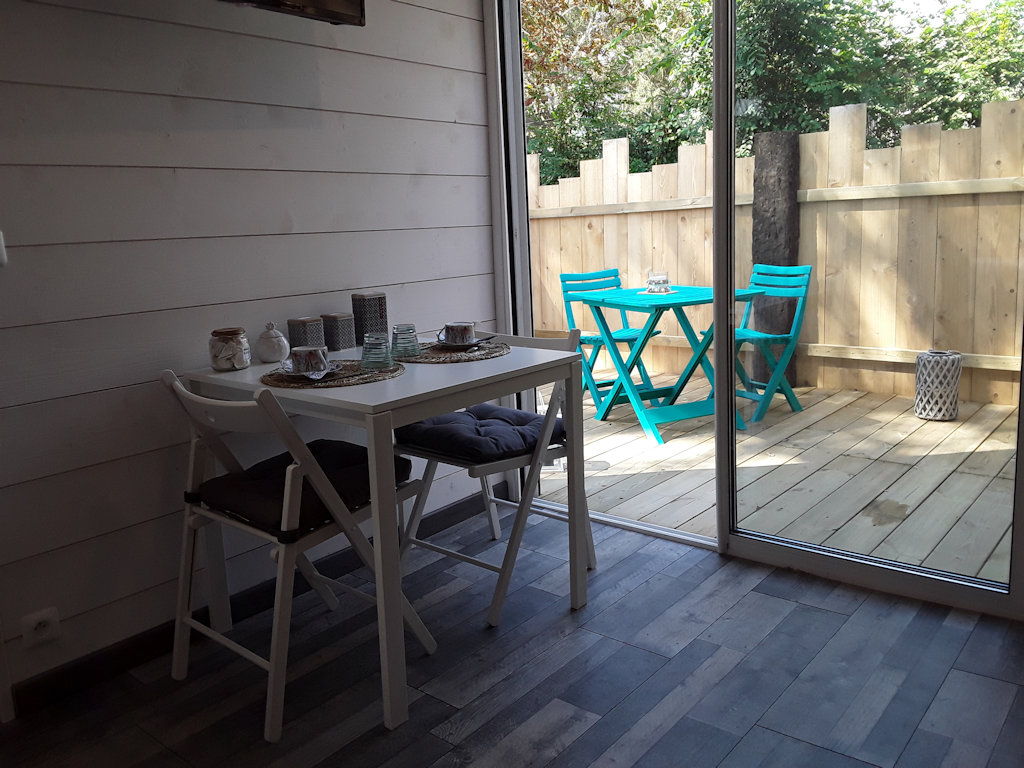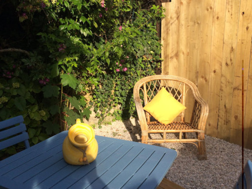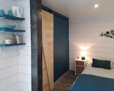 La chambre dispose d'un petit coin cuisine avec petit nécessaire de vaisselle.