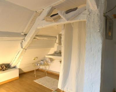 Située dans les combles, la suite comprend un coin salon ainsi qu'une cheminée et partage une terrasse avec la salle de petit-déjeuner. Chaque chambre dispose d'un lavabo et d'une douche, les toilettes, quant à elles, se trouvent sur le palier. Le petit-déjeuner est gratuit si vous séjournez dans cette chambre.