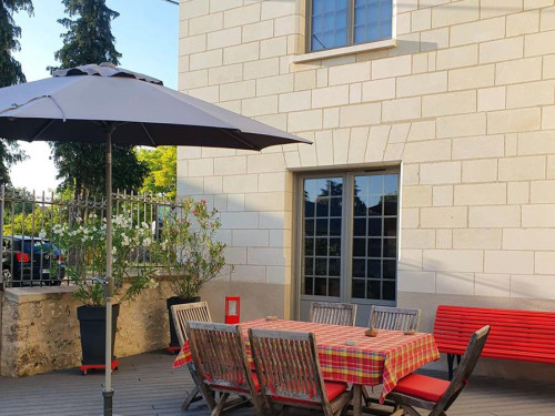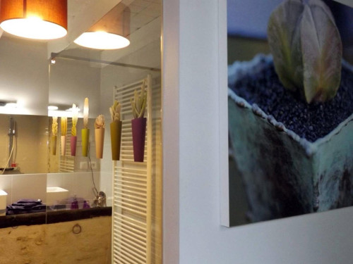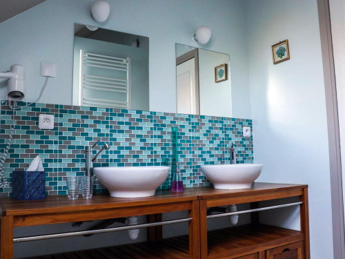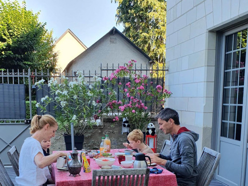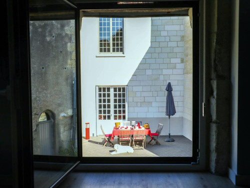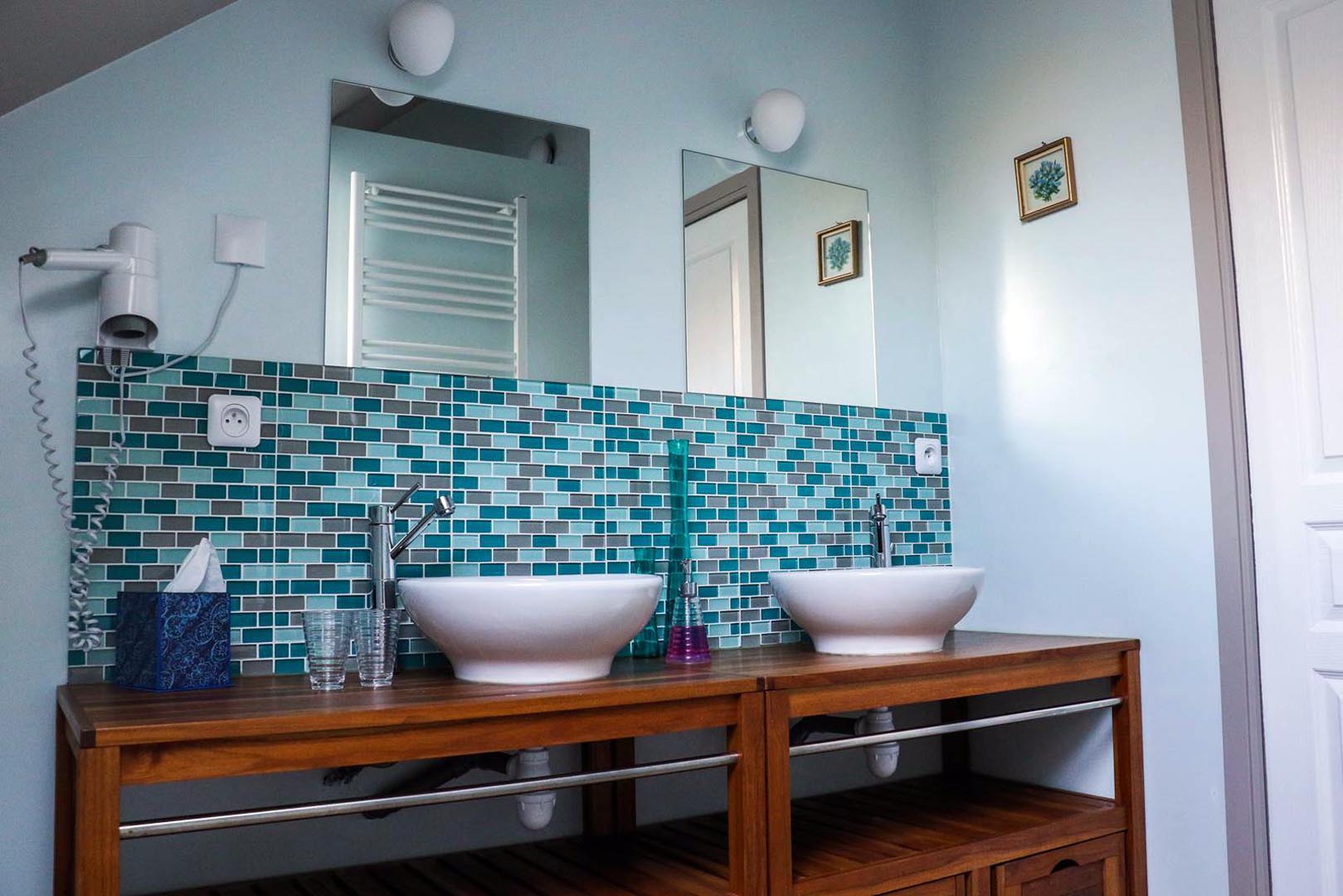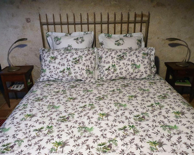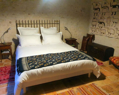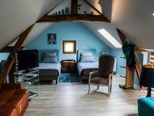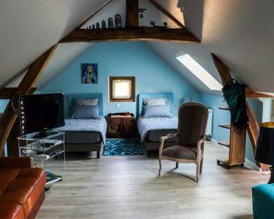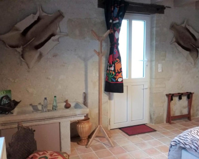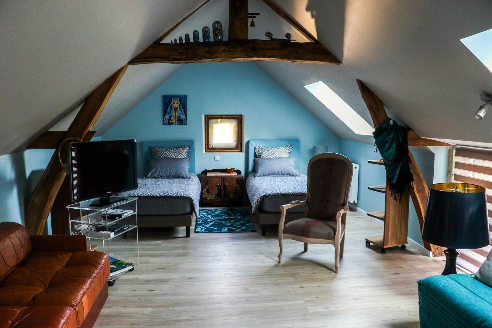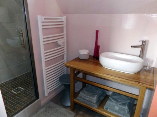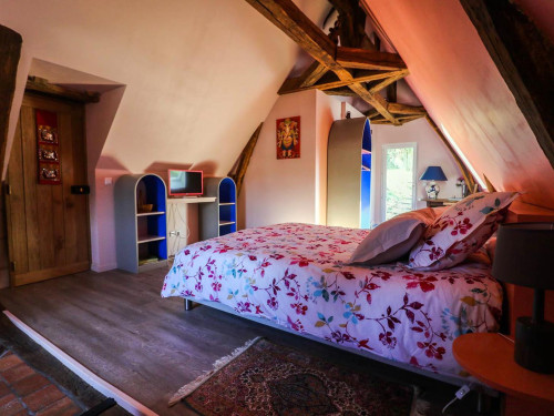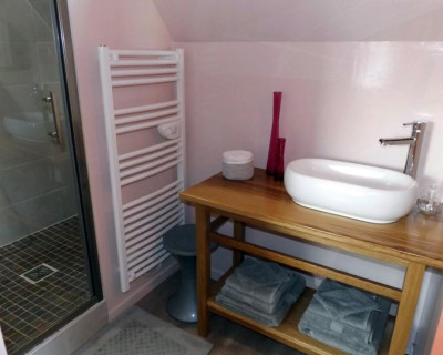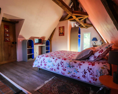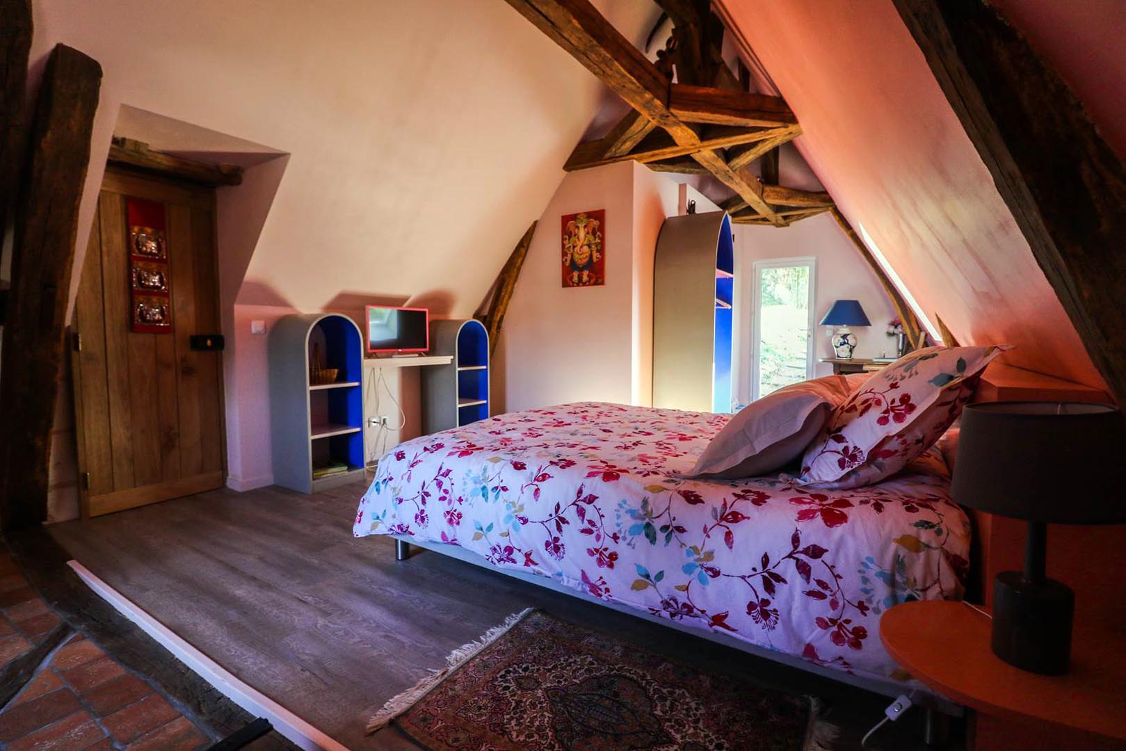 A noter : la montée à cette chambre se fait de la maison principale par un escalier ancien clouté dont la hauteur des marches est supérieure à 18 cm. Un accès par le côteau est également ouvert l'été.