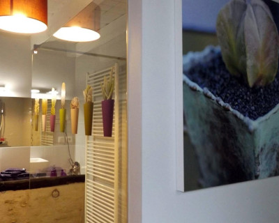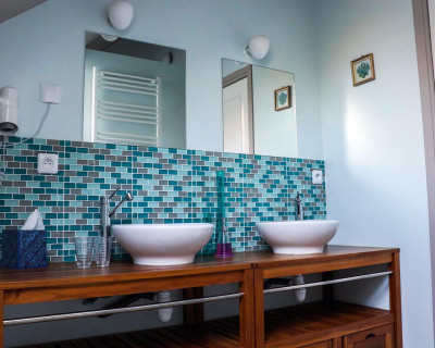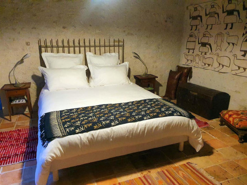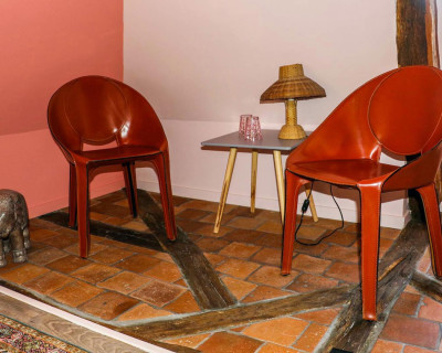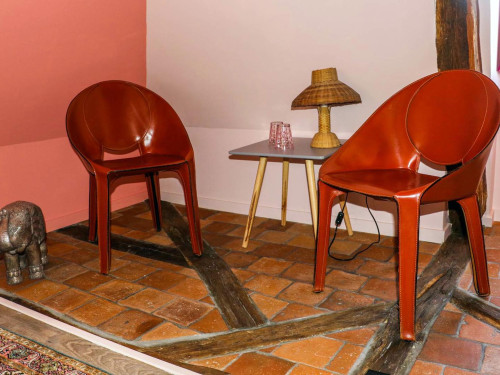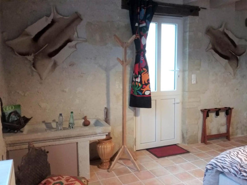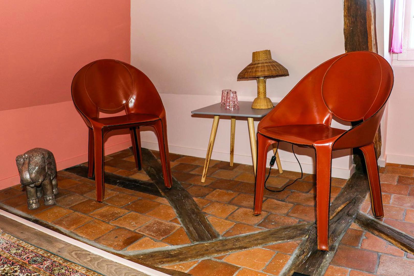Son originalité : le double faîtage, vestige du grenier et le coin salon disposé sur une partie restaurée dans sa structure initiale avec tomettes et poutres au sol.