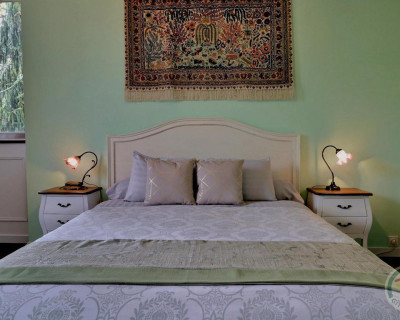 Un grand lit double très confortable, un coin salon vous offrent un lieu, élégant et chaleureux pour se détendre en toute intimité.