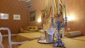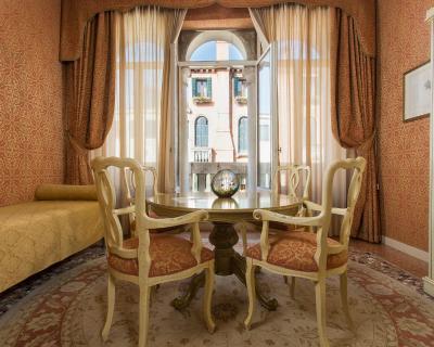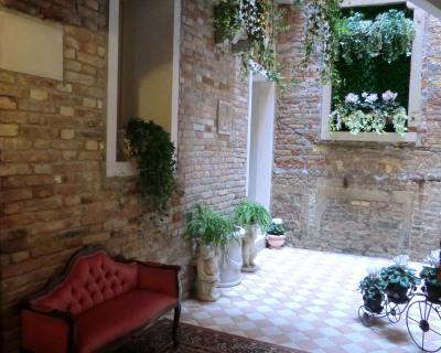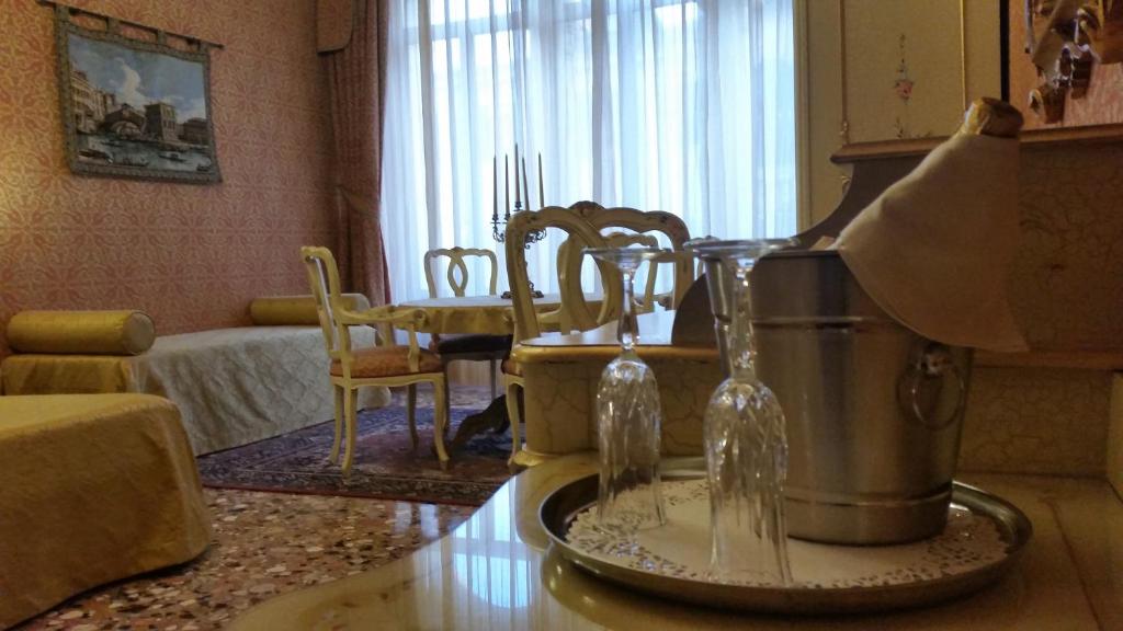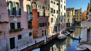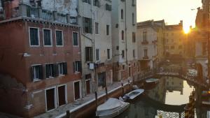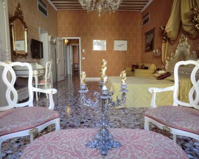 Le logement comporte un mobilier typique de style vénitien avec des lustres en verre de Murano, des poutres apparentes et des finitions en marbre.