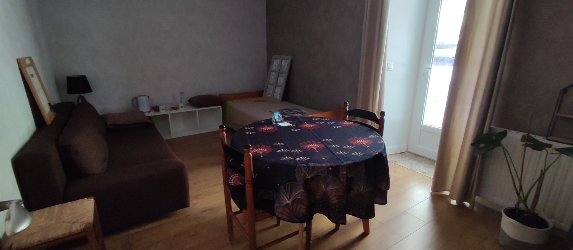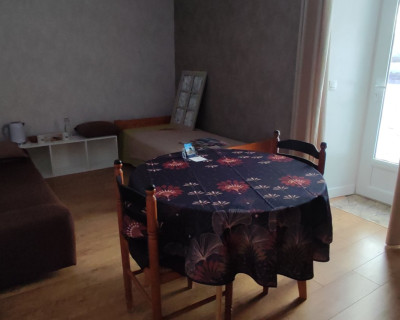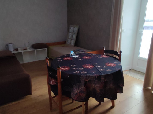 - 1 pièce d'entrée avec 1 canapé convertible, 1 table, 4 chaises, petit réfrigérateur, bouilloire, machine à café