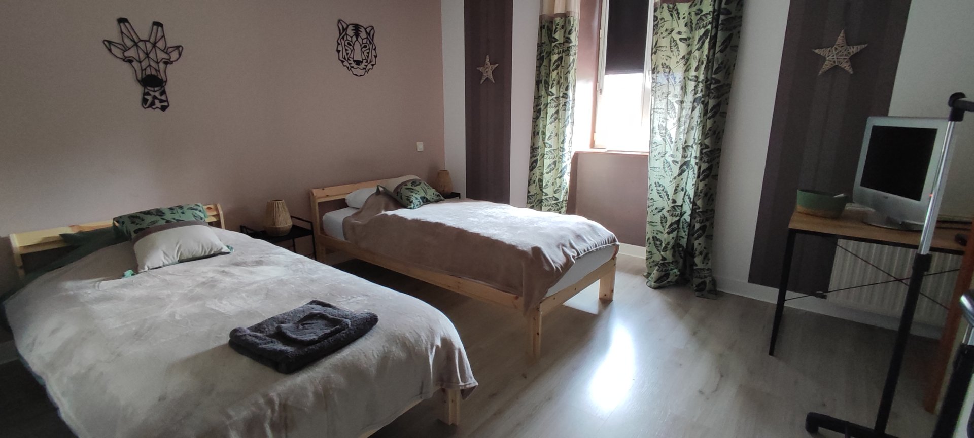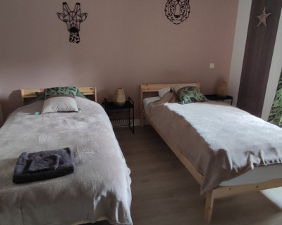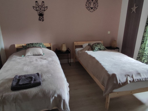 - 1 chambre avec 2 lits 90x200 avec télévision, 2 chevets, penderie