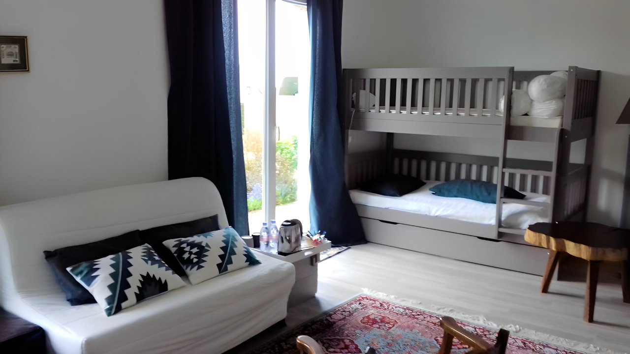 Avec vue sur le golfe du Morbihan.( 90 euro la nuit pour 2 personnes plus 30 euro par personne supplémentaire limitée à 2 adultes ou 4 enfants, gratuit jusqu'à 12 mois)