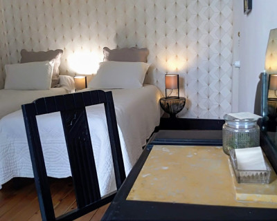 Un petit bureau d'appoint. Lits modulable : 2 lits individuels ou un king size selon votre choix à préciser lors de la réservation. Salle de bain avec douche.