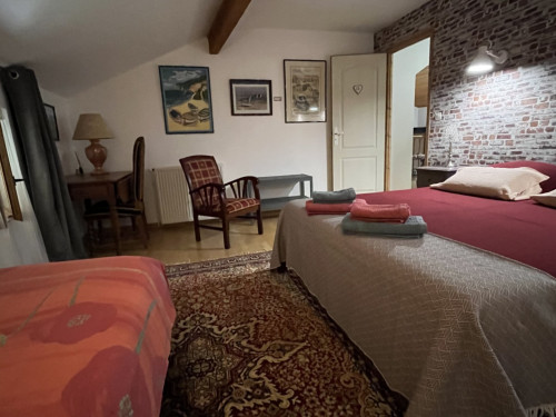 Nous recommandons vivement cette location vous apprécierez l’accueil chaleureux des propriétaires, soucieux de rendre votre séjour agréable. Si le temps le permet le petit déjeuner est servit sur la terrasse. La chambre est au calme et reposante.