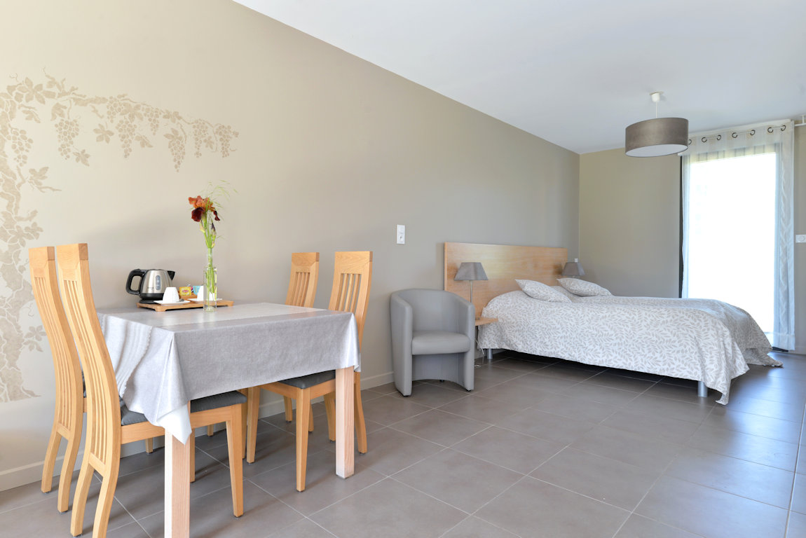 Nos chambres peuvent accueillir 2 à 4 personnes. Les pièces sont spacieuses (38 m² et 40 m²) et comprennent un coin chambre équipé d'un grand lit (160 cm) ou deux lits, un coin salon avec canapé lit (140 cm) donnant sur une terrasse privée, d'une salle d'eau et de WC privatifs.