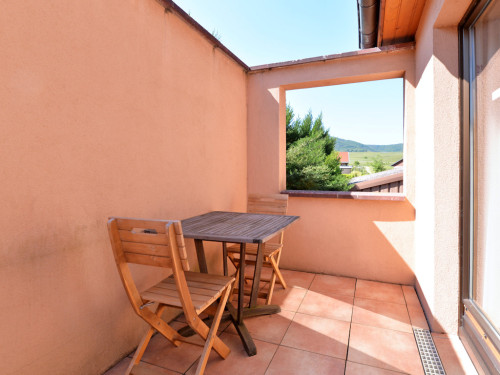 Chambre donnant sur un balcon avec vue sur les trois châteaux de Ribeauvillé