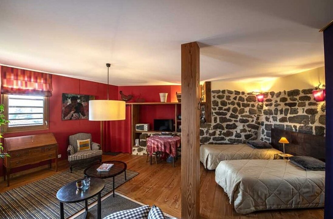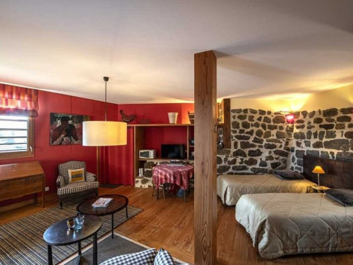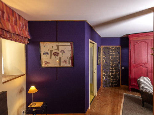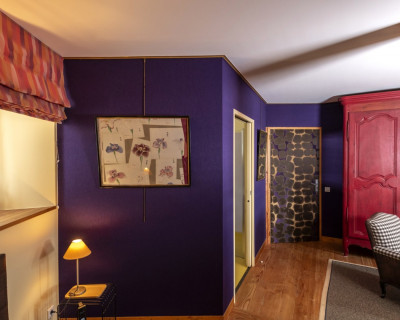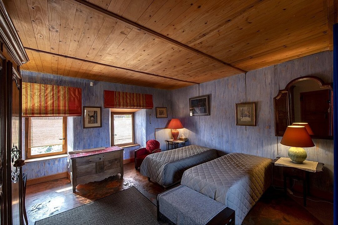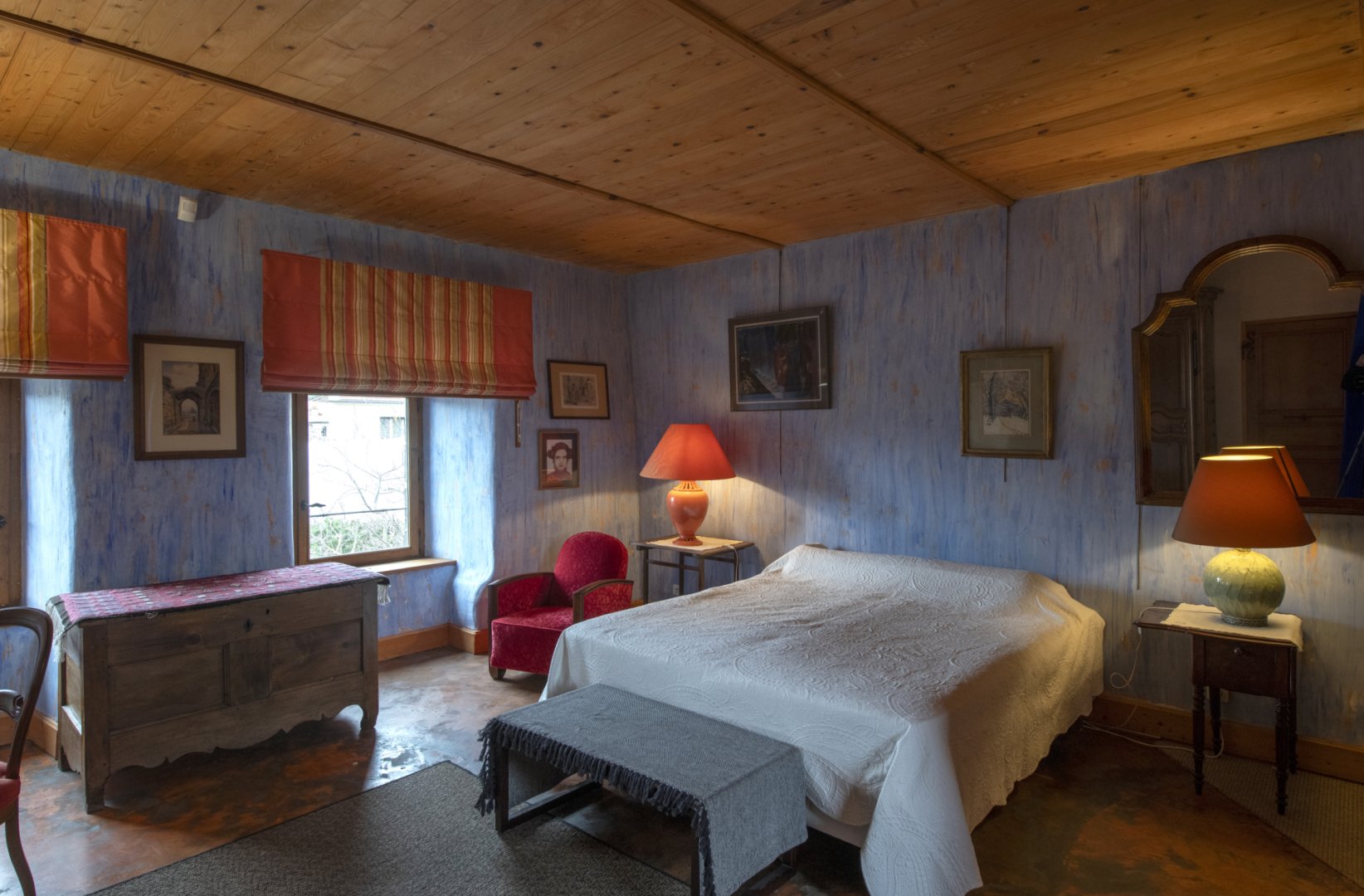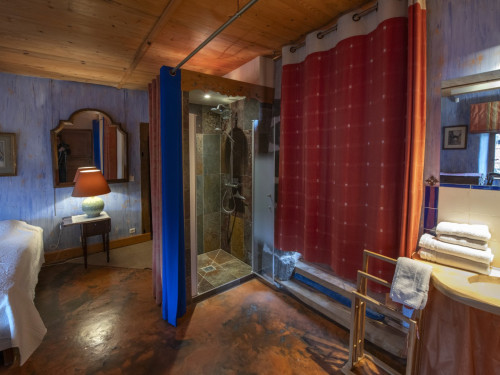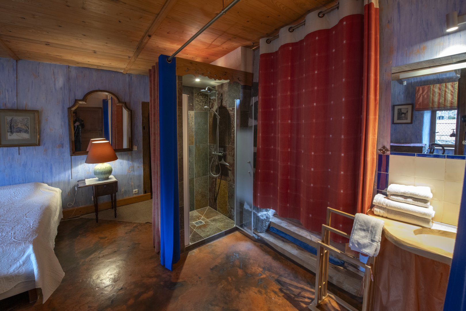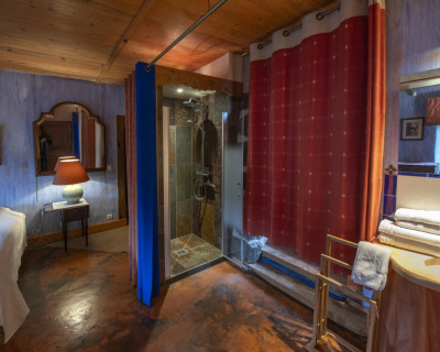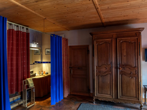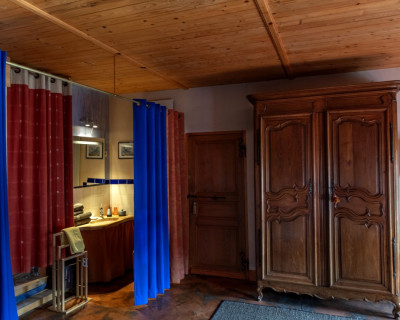 Possibilité d'associer à cette chambre une autre chambre (chambre jaune ) qui comporte un lit deux personnes, salle de bain et WC communs à la chambre bleu