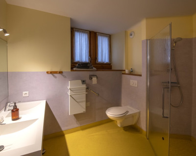 Le WC privatif est en bas des escaliers pour donner plus d'espace à cette pièce.