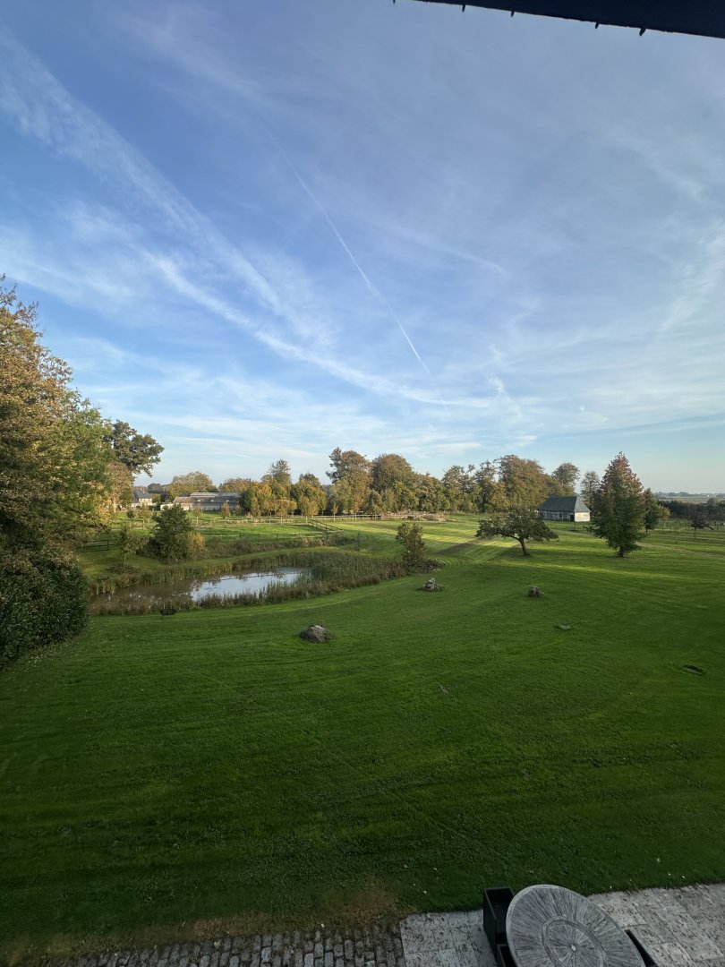 Nous avons réservé une chambre et avons eu une salle de bain privé ainsi qu’un beau salon dans lequel nous a été servi le petit déjeuner (qui était délicieux, avec des produits locaux). La photo est la vue que nous avions au réveil 😌