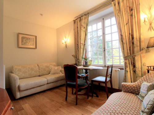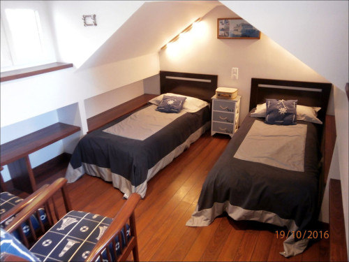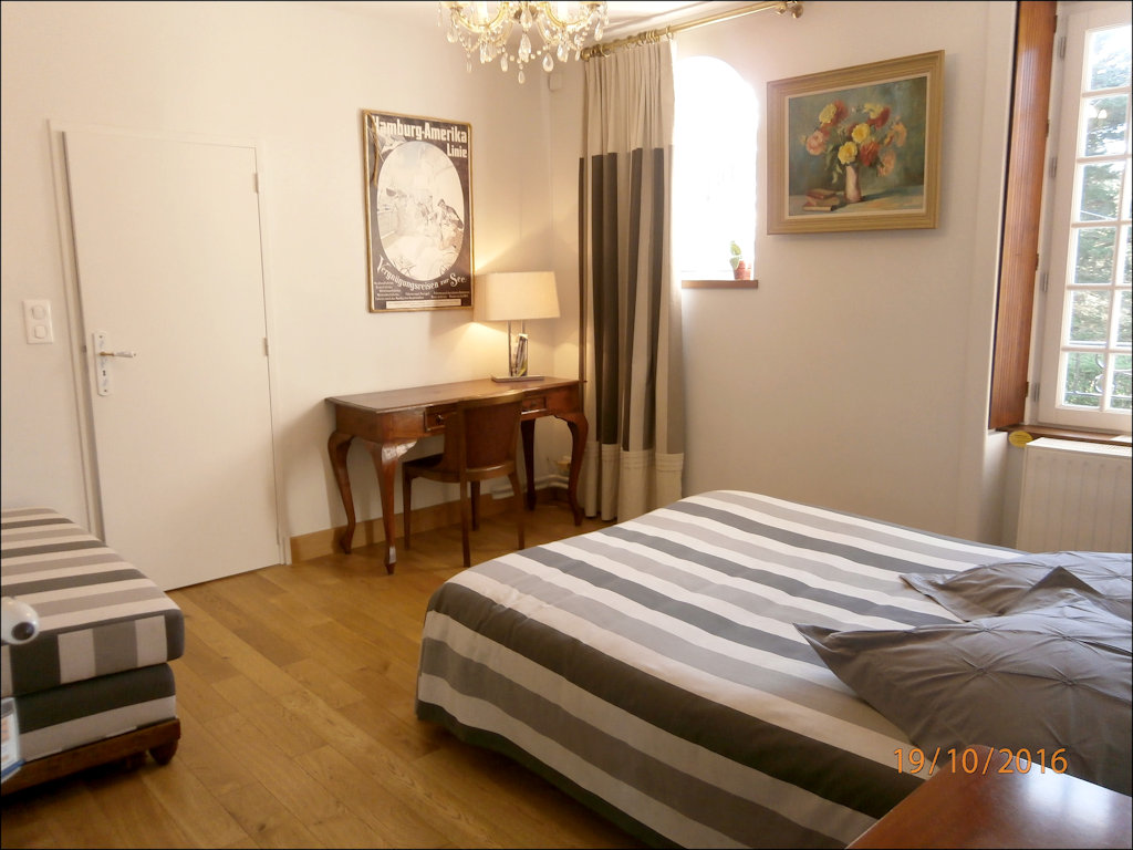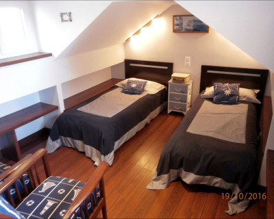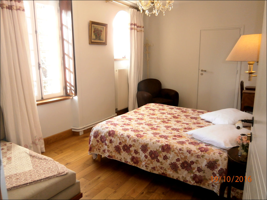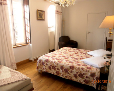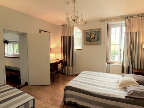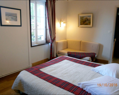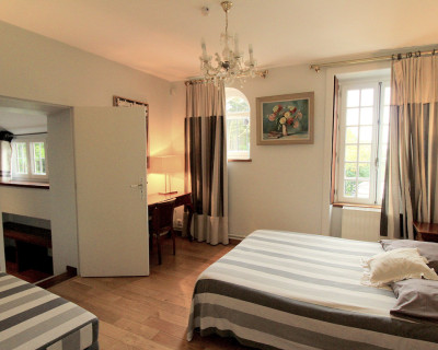 Cette chambre offre deux lits jumeaux réunis (160) ou séparés + la possibilité d'ajouter un lit d'appoint.