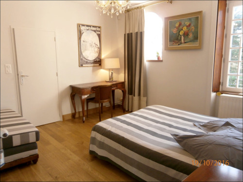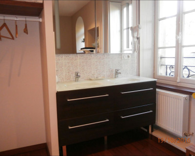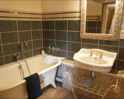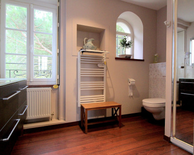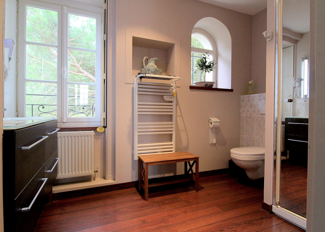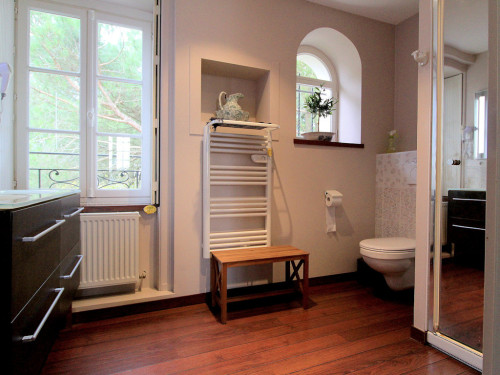 Elle dispose de vastes sanitaires privatifs (lavabo - douche - WC - sèche-serviette - sèche-cheveux).