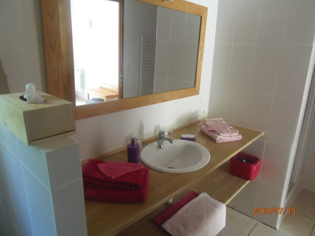 Quel agréable accueil et magnifique hébergement ! La chambre est superbe avec sa salle de bain privative et, cerise sur le gâteau, ma chienne Lady qui marche avec moi sur le GR a pu dormir au pied de mon lit. Le jardin est vaste avec des endroits ombragés. J'ai attendu le repas, servi seulement à 19h30, impatiemment :). Mais de l'entrée au dessert, tout fut délicieux car fait maison ! Et le matin, nous avons même eu droit à un morceau de cake marbré maison en supplément.