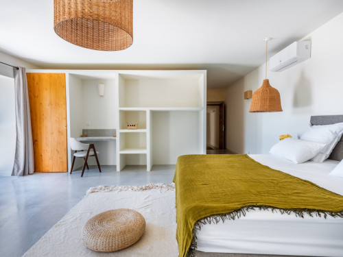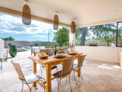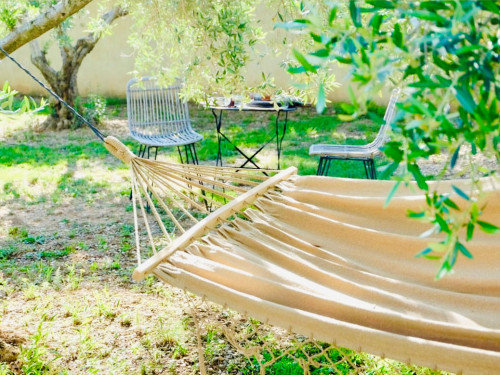 vous avez accès à la cuisine extérieure et vous pouvez utiliser le frigidaire, four, micro-onde et la vaisselle est fournie