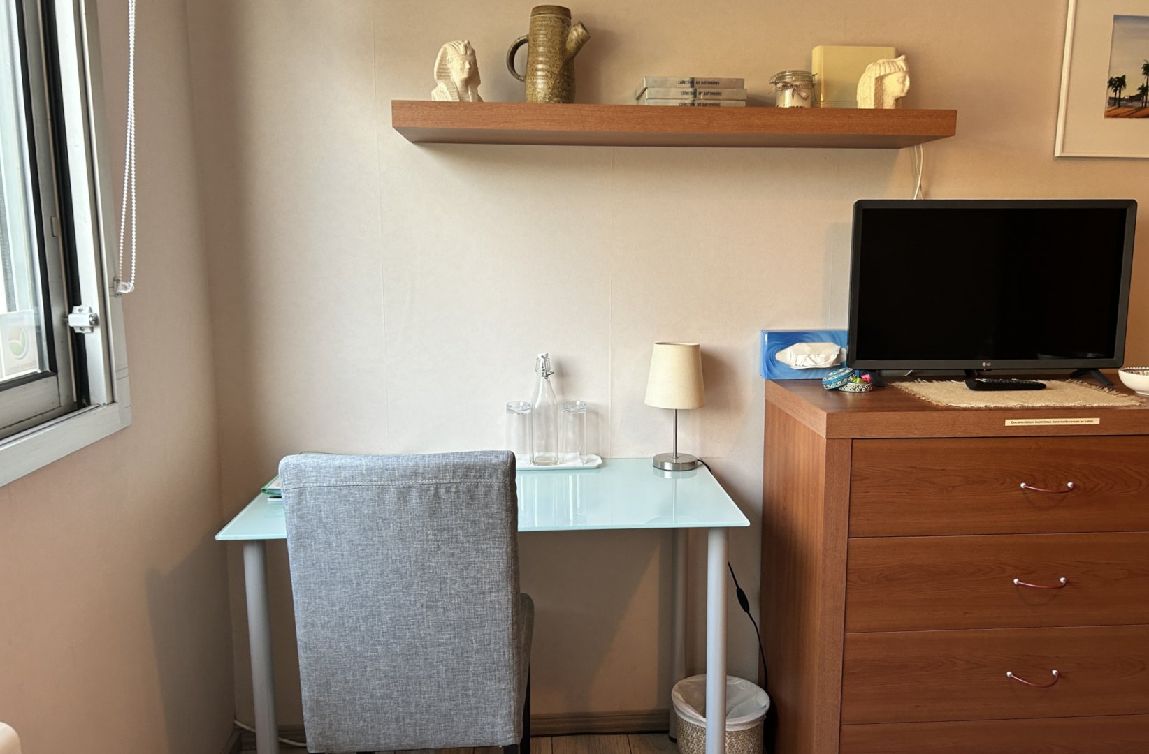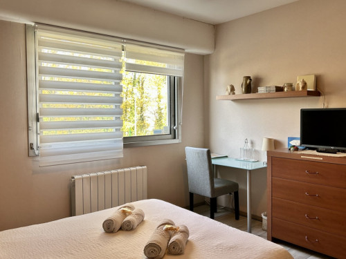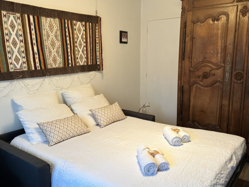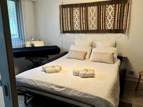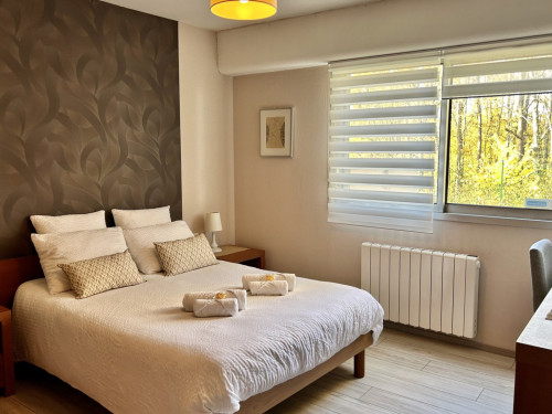 Vous disposerez d’une chambre principale avec lit 140x190, armoire, commode, télévision et bureau.