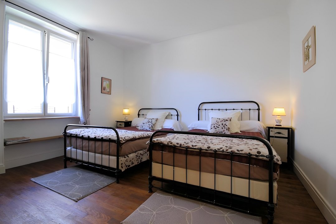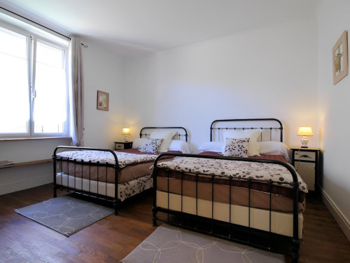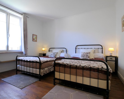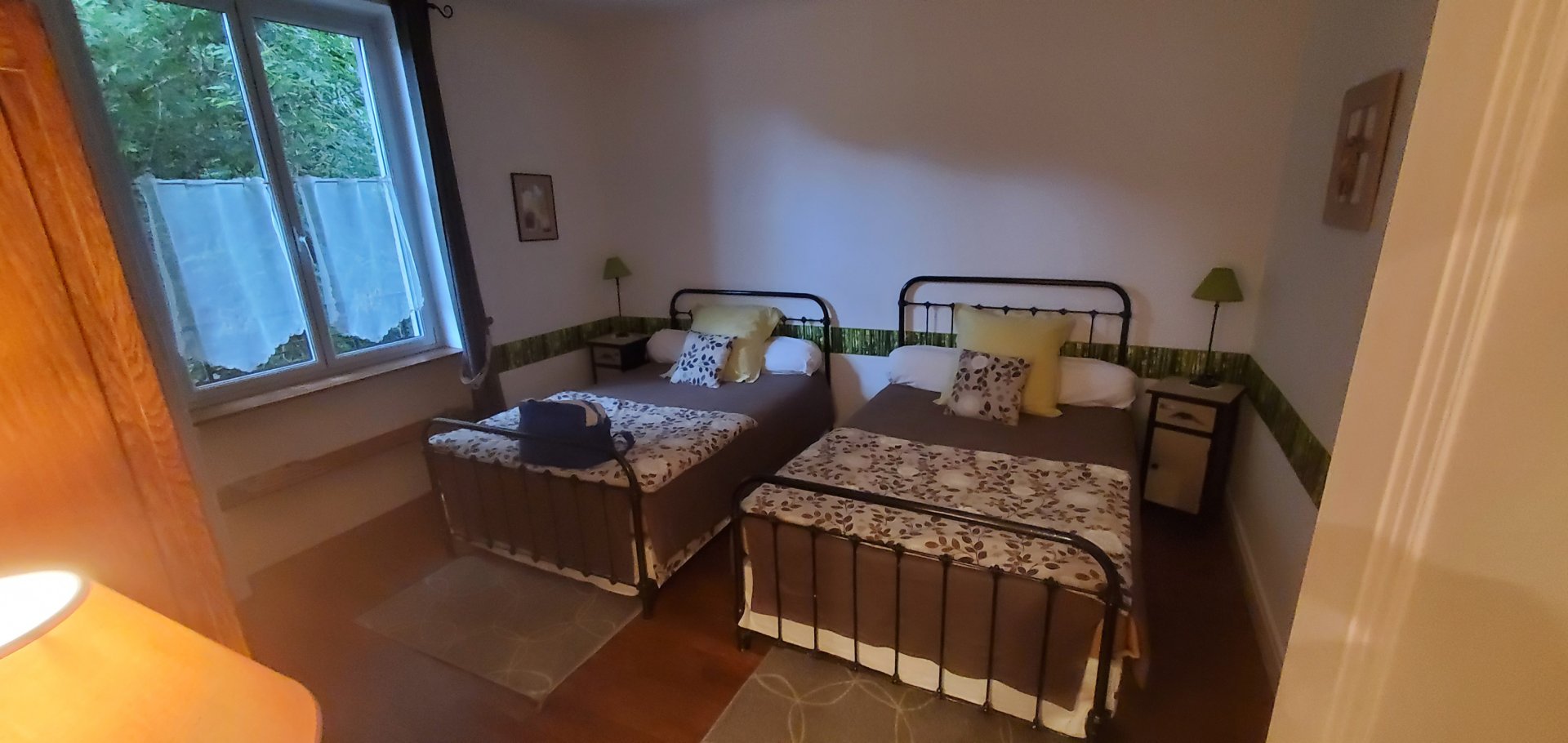 Au 1er étage : un salon commun à 2 chambres avec plateau de courtoisie, la chambre « La Meunière d'en Bas » est composée d'un lit 160x190 et d'un lit 90x190, salle d'eau (douche).